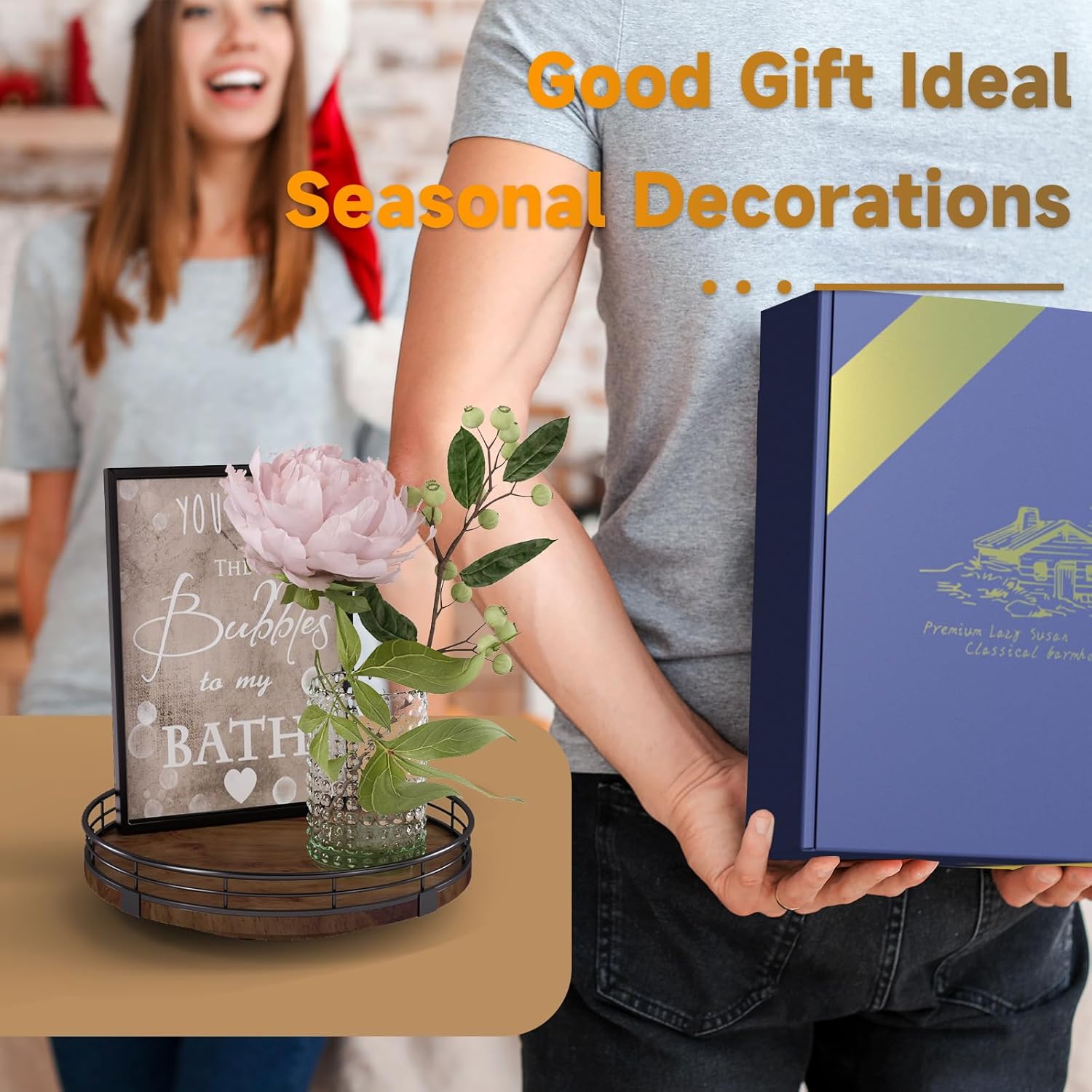 Farmhouse Oak 9" Lazy Susan Turntable Organizer for Cabinet, Round Wooden Lazy Susan Organization and Storage for Dining Table, Pantry, Kitchen, Countertop, Cupboard,Home Decor, Walnut Wood
