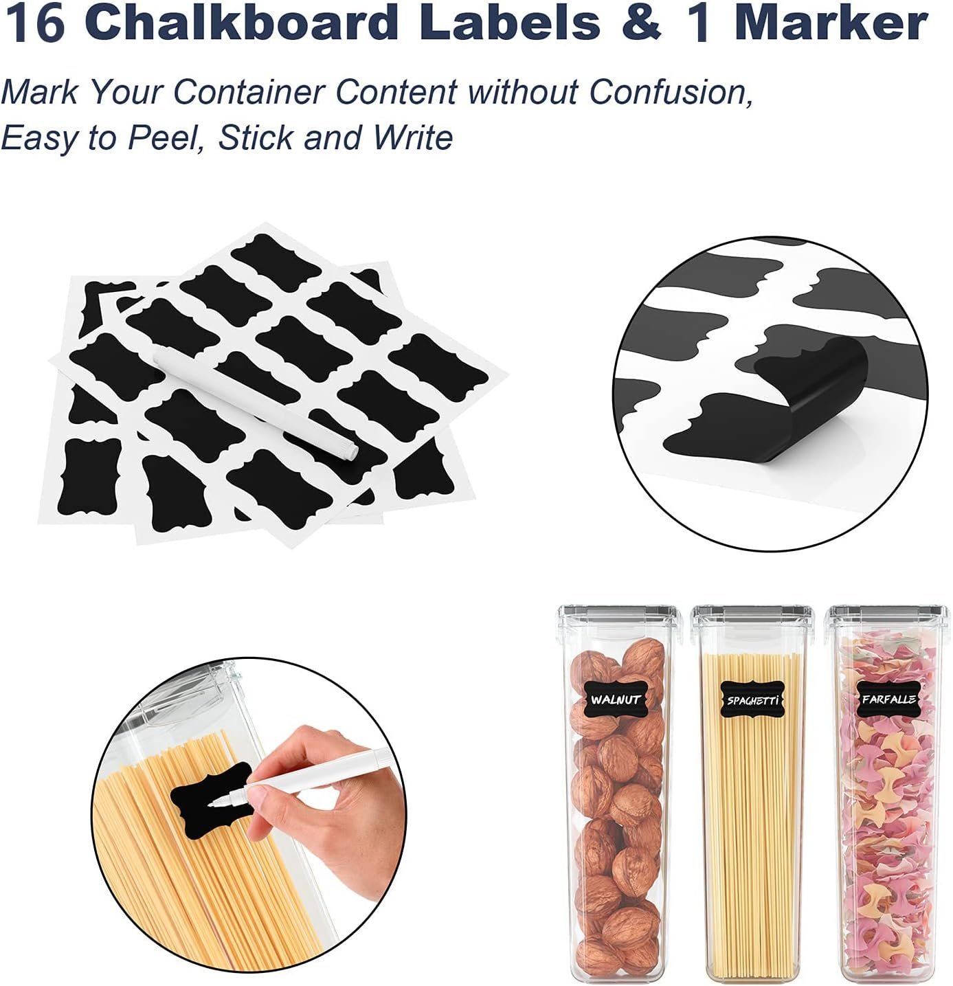 ✮Ideal Bundle Set: We provide different capacity you needed. 4 x Tall (2.8L/2.5Qt), 4 x Large (2.0L/1.8Qt), 4 x Medium (1.4L/1.3Qt), 4 x Small (0.8L/0.7Qt). Give away bonus 18 labels with 1 chalk marker & measuring spoon set. (Please note that product surface is NOT 100% clear as glass. Please kindly think it through before purchasing.) ✮High Quality: Feshory food storage containers are made of 100% No BPA food safe plastic. A little milk white color, not 100% clear. We have strict check and high quality requirement to guarantee our product for long -term use. ✮Lightweight & Leak-proof: Our food containers with 4 sided-locking airtight lids, are not only suitable for dry food, like biscuit, snacks, cereals, spaghetti, coffee beans, but also fit with soup, porridge, juice etc. ✮Kitchen Must Have: These containers is stackable, microwaveable, and safe on dishwasher and refrigerated storage. More important! It can keeps your kitchen cabinet or pantry clean and organized. ✮100% GUARANTEE: Customer satisfaction is our priority, so if for whatever reason the product isn't working out, just let us know and we’ll make it right by refunding your purchase.