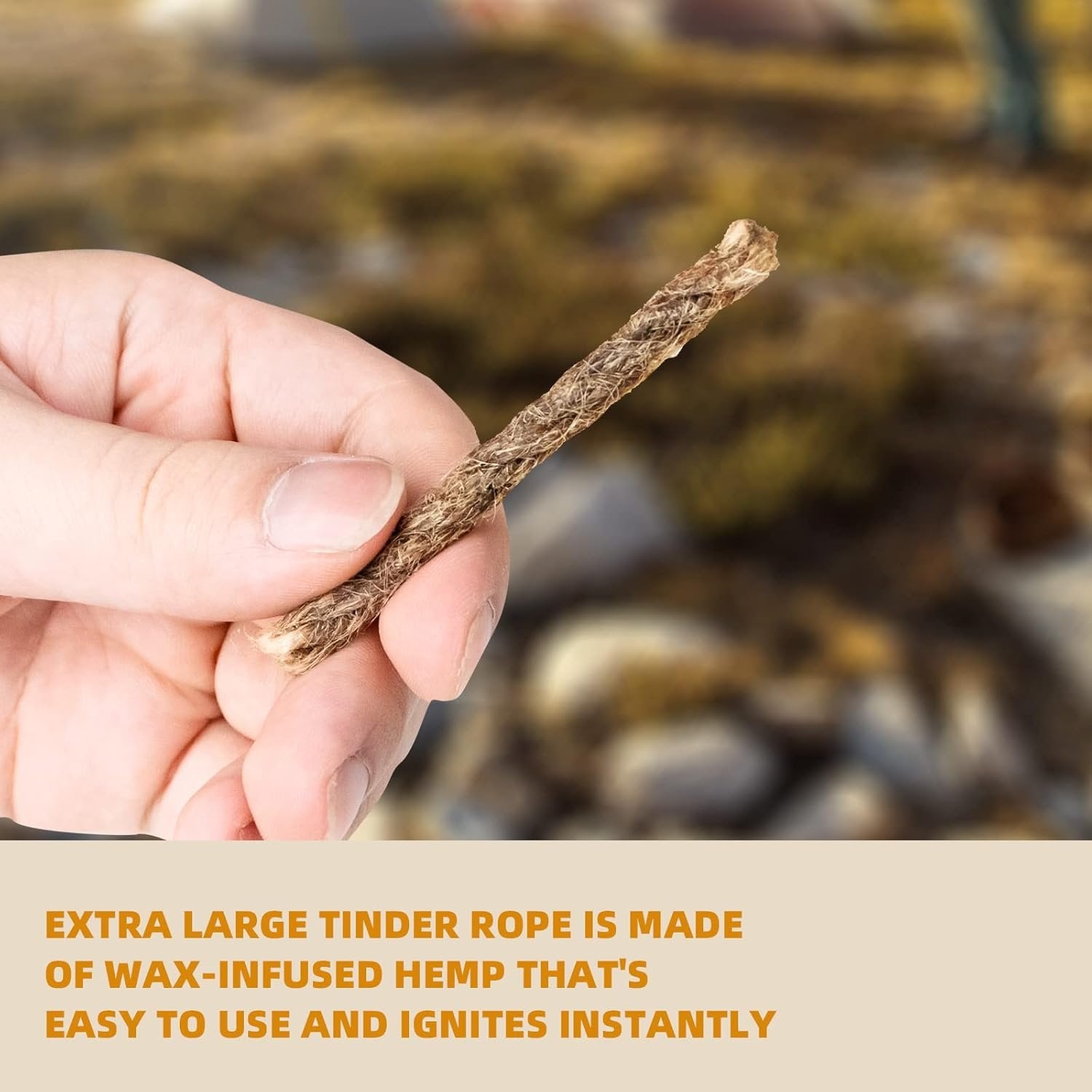 Ferrocerium Rod Length - 3.1"(8cm). Diameter: 5/16"( 8mm). Large enough for a shower of sparks and small enough to carry RUGGED & RELIABLE - The flint fire starter is built to last, withstanding up to 20,000 strikes in any weather condition. The large size provides optimal grip and handling, making it virtually foolproof. MILITARY-GRADE QUALITY - Tested by special forces, our flint and steel fire starter kit is trusted by professionals and is a must-have for your emergency equipment. BONUS EXTRAS - The fire starter kit comes with a range of unique extras, including a Magnesium Fire Starter, 10ft wrist lanyard, 6-in-1 versatile tool (Striker with spark optimized edge, hex wrench, ruler, map scale, Carabiner, and Emergency whistle ESSENTIAL FOR SURVIVAL - Whether you’re bush crafting, hiking, camping, hunting, fishing, or just enjoying the great outdoors, our fire starter kit is a must-have for your survival kit. It’s effective, durable, and perfect for emergency situations, including use with gas camp stoves and BBQ.