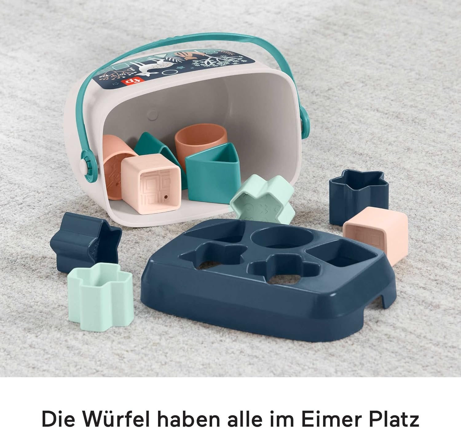 Fisher-Price Stacking Toy Baby’s First Blocks Set of 10 Shapes for Sorting Play Ages 6+ Months, Navy Fawn