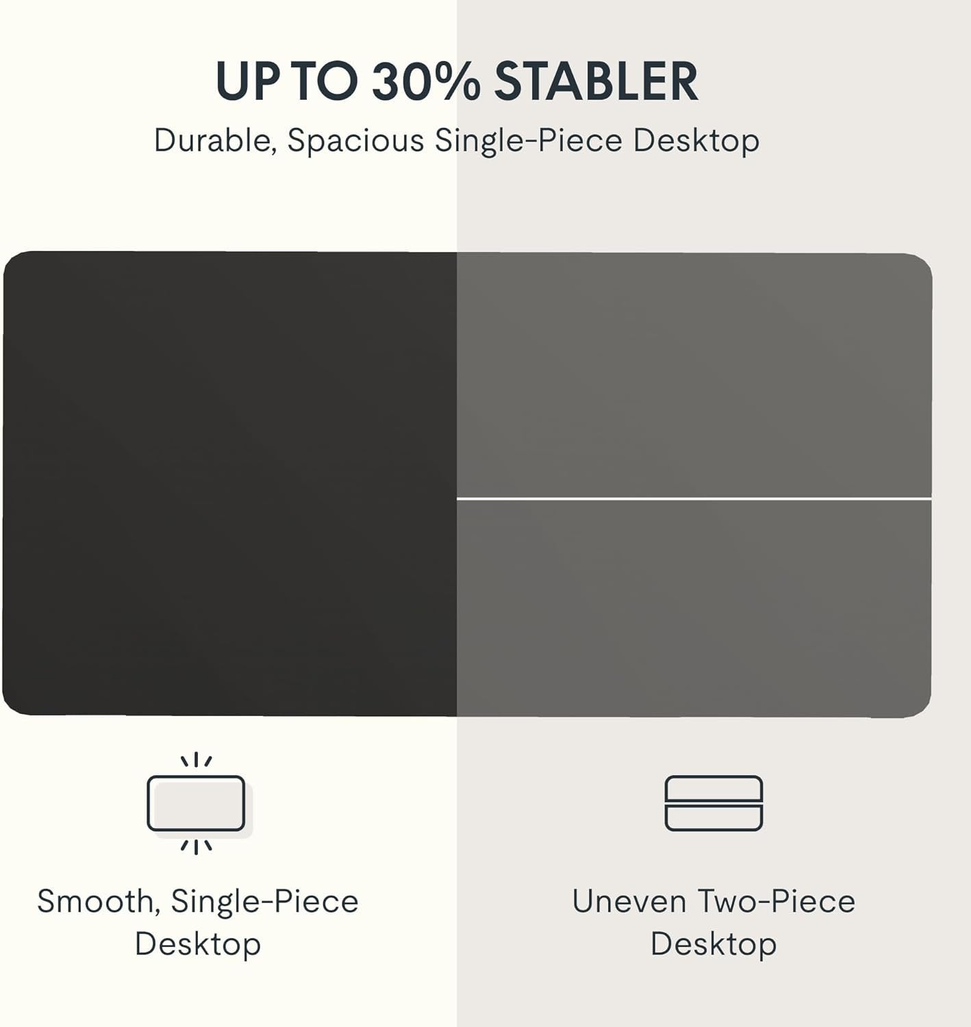 SLEEK & FUNCTIONAL DESIGN: Streamlined 40” x 24” eco-friendly whole-piece desktop easily holds your laptop, monitor, and more while taking up minimal floor space in your home or office. Please allow a slight 0 to 1-inch difference in desktop size due to manual measurement. ELECTRIC HEIGHT ADJUSTABLE LIFT SYSTEM: The motor lift mechanism offers smoother height adjustments, from 28" to 47.6" (without 1" thickness of table top included), at a speed of 1"/second with low noise(under 50 dB) while running. SOLID CONSTRUCTION: An industrial-grade steel frame combined with a solid desktop allows for a 154 lbs. weight capacity to support your ideal workspace setup. LED MEMORY CONTROL PANEL: A 6-button controller with 4 programmable memory presets lets you set 4 desired desk heights for convenient switching from sitting to standing throughout the day. PLEASE NOTE: The product will be shipped in two separate packages which may be delivered separately from each other. Some steps may require a drill, which is not included.