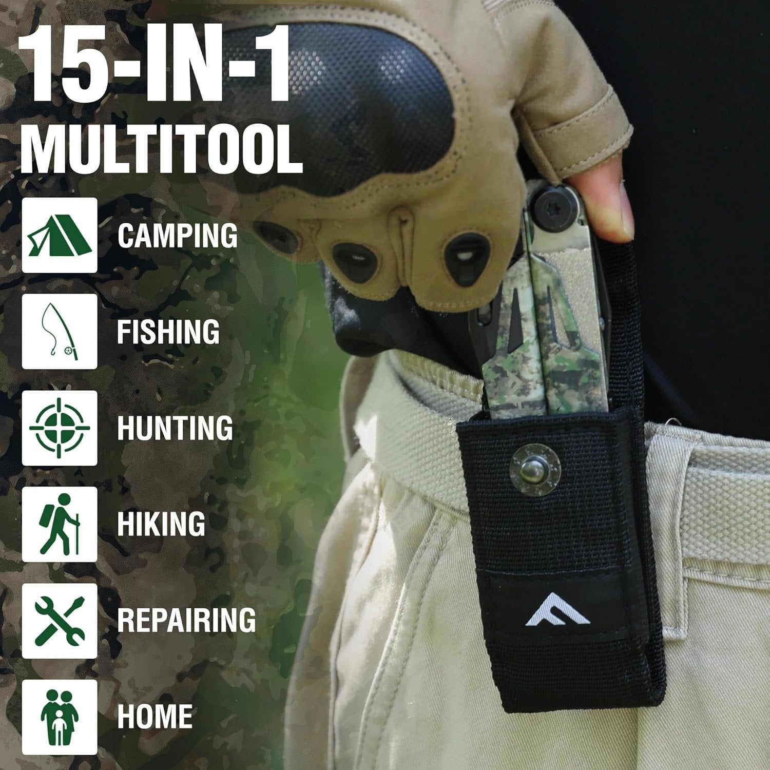 15-in-1 Function: This multi-tool includes long nose pliers, regular pliers, soft wire cutter, hard wire cutter, saw, serrated blade, wood/metal file, scissors, large slotted screwdriver, small slotted screwdriver, can opener, wire stripper, Phillips screwdriver (PH1), and slotted screwdriver (3/16") Portable Everyday Carry: Weighing just 0.59 lb, this compact FLISSA 15-in-1 Multitool is perfect for daily use. It comes with a durable nylon sheath for easy attachment to your belt or backpack, ensuring quick access to essential tools for camping, fishing, or DIY tasks Premium Durability: Constructed from high-strength, ultra-durable stainless steel, this pocket multi-tool is designed for exceptional longevity and corrosion resistance. The sleek design offers both comfort in use and a visually striking appearance Wide Applications: Whether indoors or outdoors, FLISSA multitools are reliable work partners. Perfect for camping, fishing, hiking, picnics, and DIY projects. It also makes an ideal gift for Father's Day, Valentine's Day, Thanksgiving, Christmas, and other holidays VEIL CAMO Design: Featuring a distinctive camouflage pattern designed by Hadley Development, this multitool pliers seamlessly blend into outdoor environments