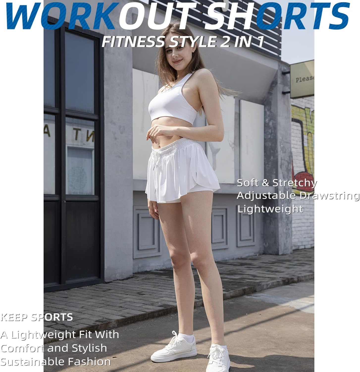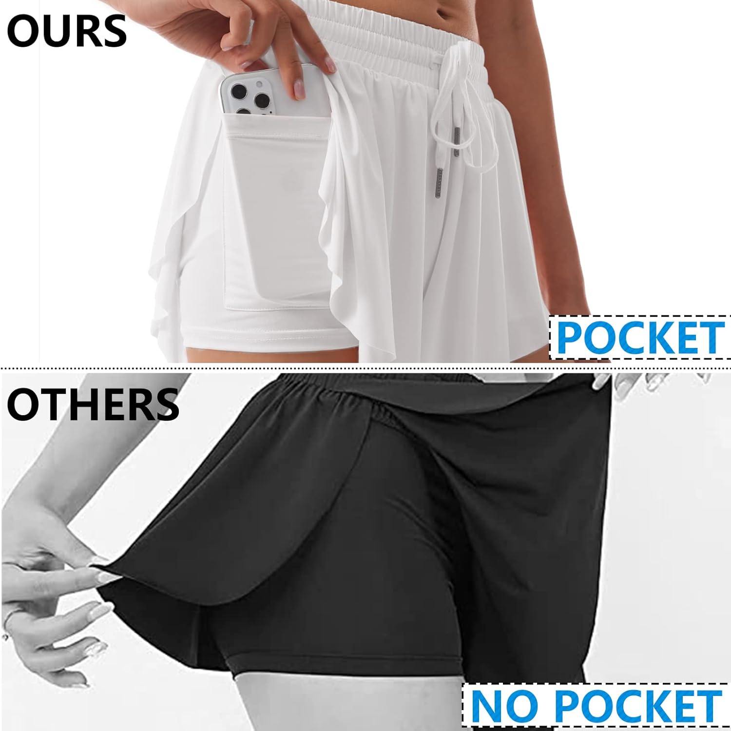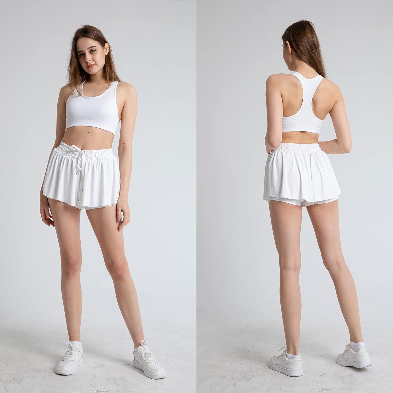 Flowy Athletic Shorts for Women Running Tennis Butterfly Shorts Girls 2-in-1 Double Layer Quick-Drying Comfy Shorts
