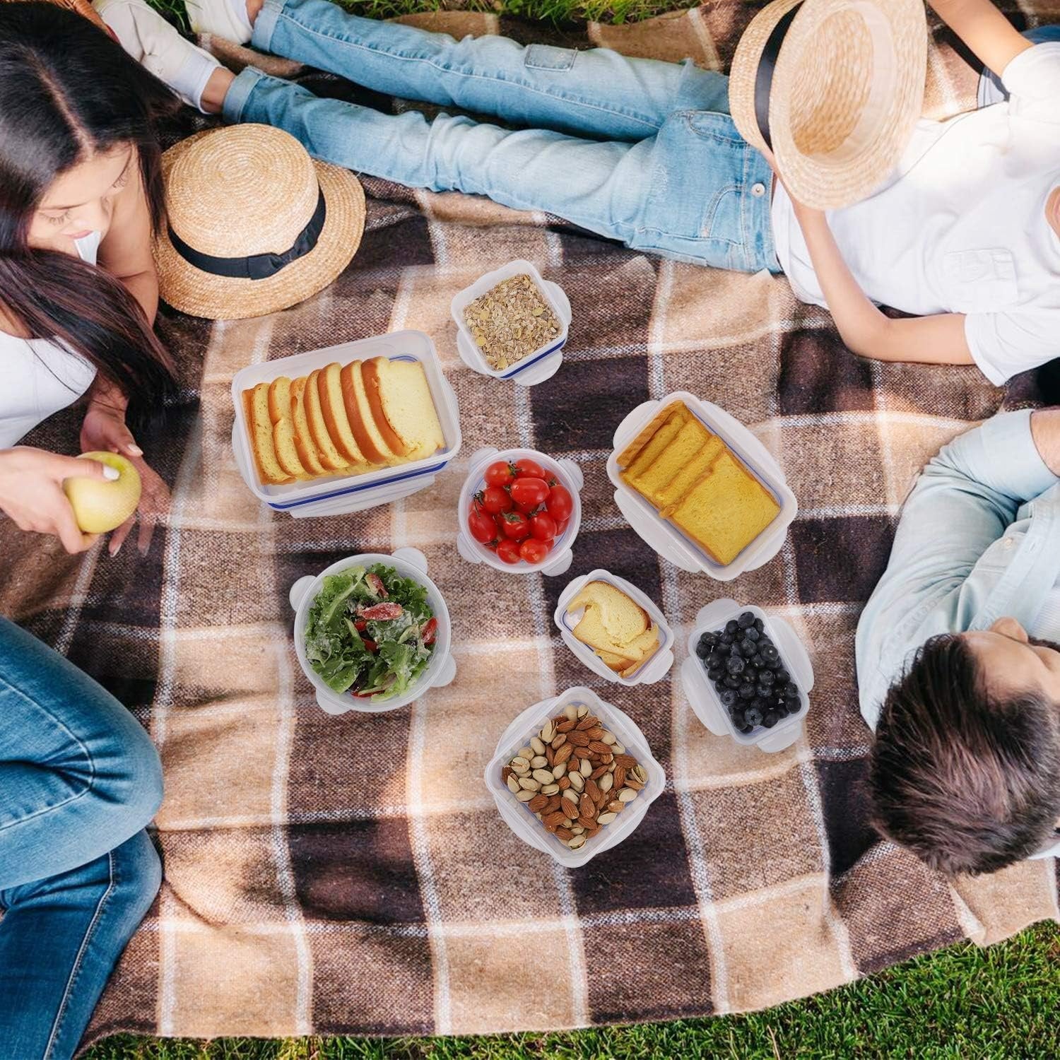 16 Piece Set Food Container: The food storage container set includes 8 containers, 8 lids, 4 rectangular containers (0.24 L, 0.5 L, 1.0 L, 1.5 L) , 2 square containers (0.4 L, 0.7 L), 2 round containers (0.4 L, 0.8 L), perfect for a variety of foods, including vegetables, fruit, drinks, bread and leftovers. 4-Hinge Locking System for Leak-Proof: The snap locking system contains 4 hinge lock and 1 silicone seal ring, it forms an airtight and watertight seal, never food spilling over again. This is great for holding liquids such as juice, soup and more. BPA Free: Our Plastic storage containers are made with Natural PP, which is BPA Free. They will keep your food odorless and maintain the freshness. Fit easily in lunch and variety of fruit and vegetables, dips and sandwich mixes. Stackable and Nesting: Our food storage containers have a unique design, they are stackable and nesting. When not in use, you can stack the same shape containers vertically, which can effectively save your kitchen space.