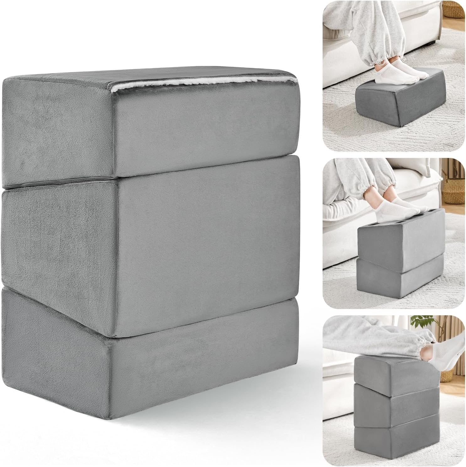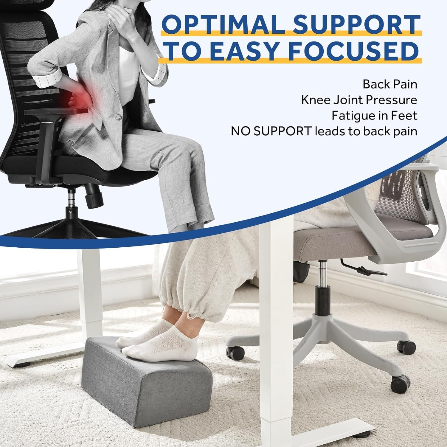 Foot Rest for Under Desk at Work, Adjustable Footrest for Office Chair & Gaming Chair,Ergonomic Footrest Pillow Desk Foot Stool with Washable Cover for Home, Airplane, Travel (Gray)