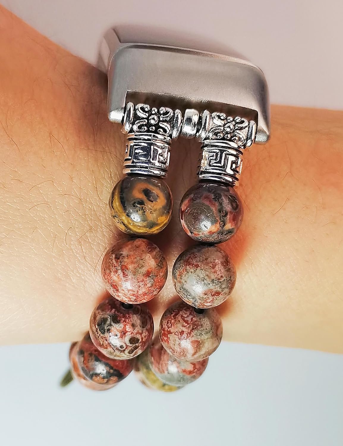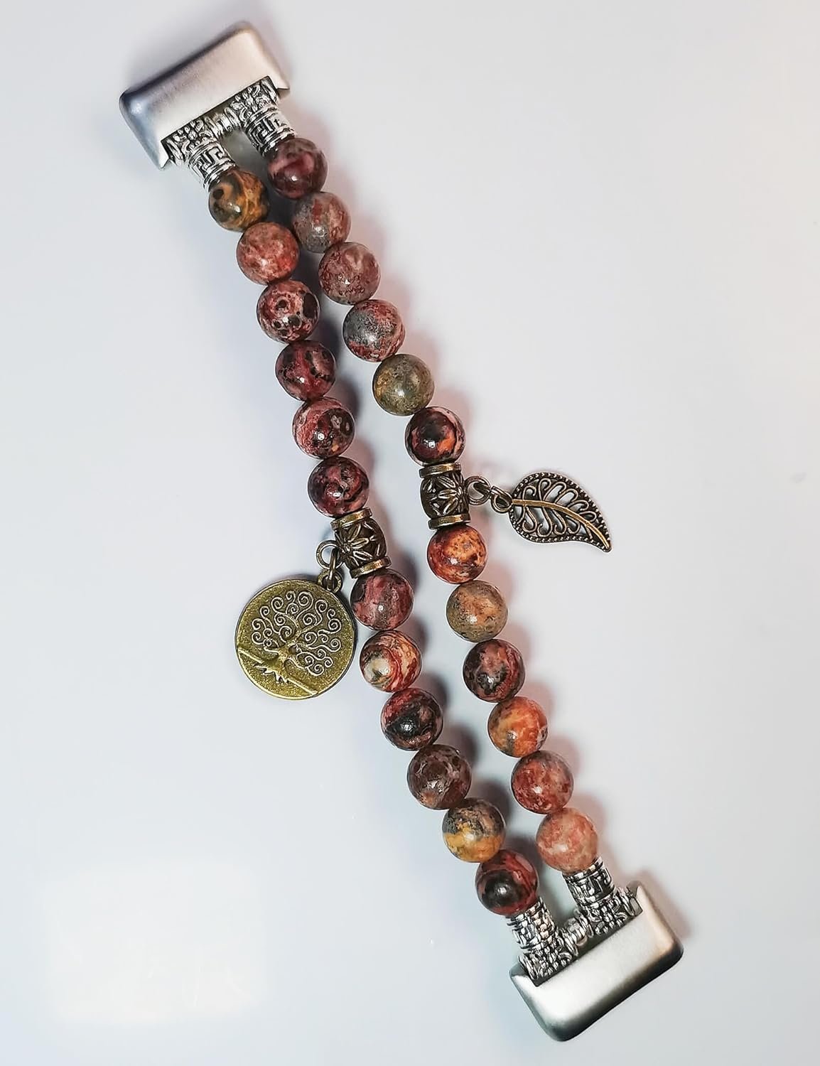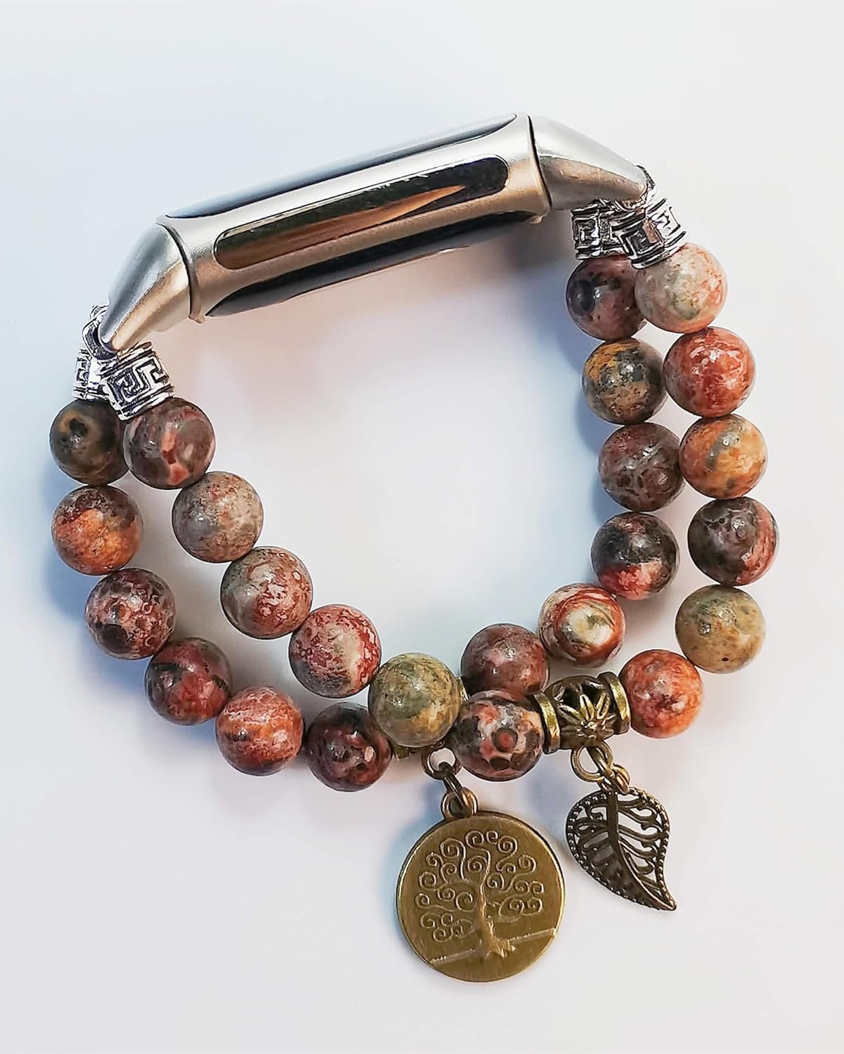 FTWIND Compatible with Fitbit Charge 5/6 Band Agate Natural Gemstone Beads Bracelet for Women Energy Stones Healing Crystal Stretch Chakra Bracelets Tree of Life