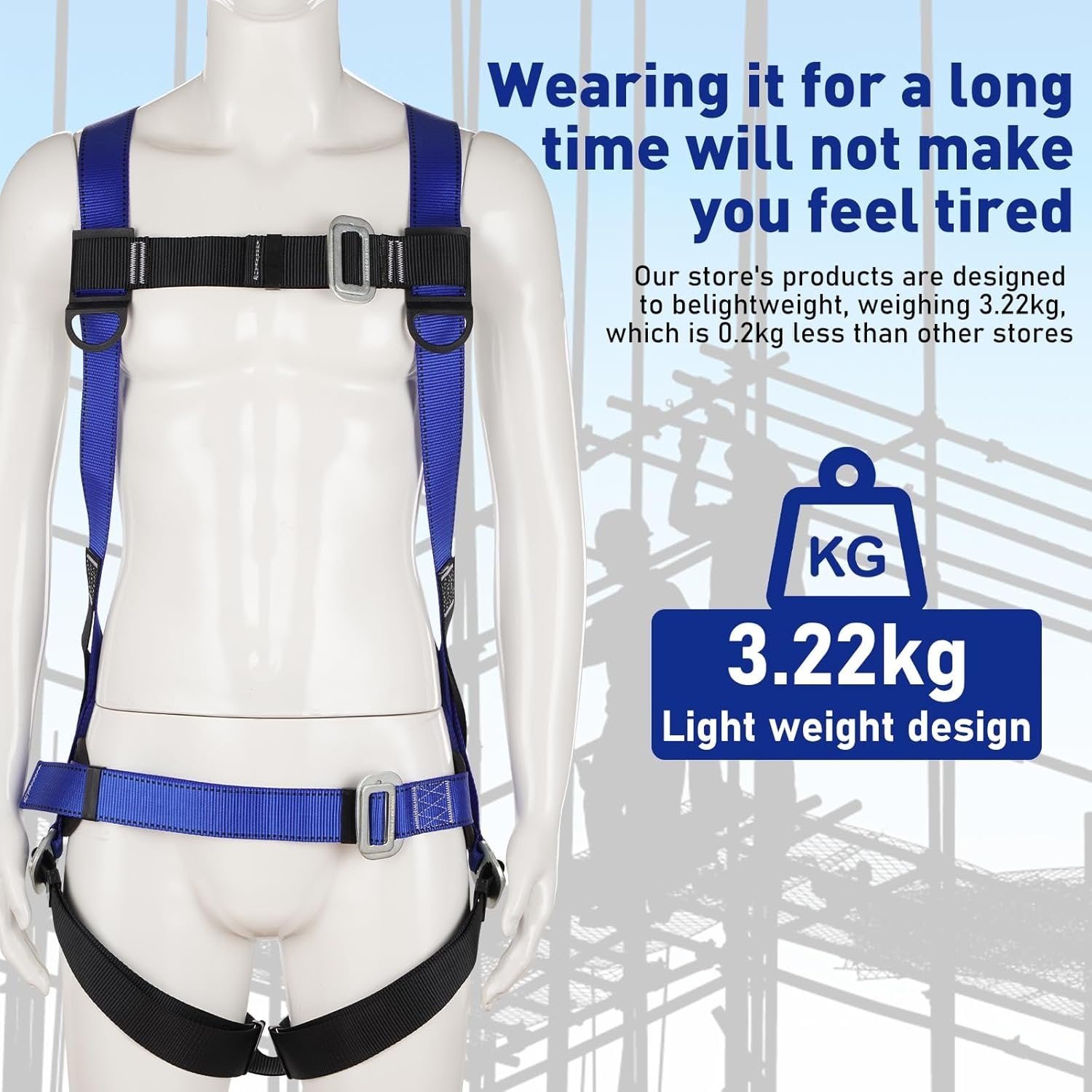 Full Body Safety Harness Tool Fall Protection Harness with D-Rings and Updated Comfortable Waist Pad Safety Harness Fall Protection Kit Universal Personal Protective Equipment ANSI/ASSE OSHA/ANSI