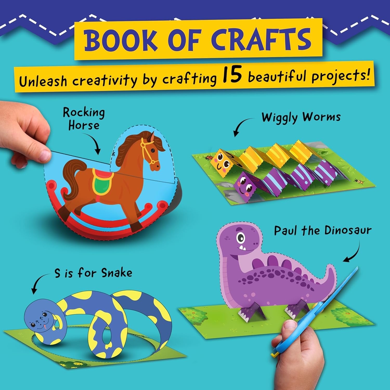 Practice Scissor Skills - Funcils "Scissor Fun" comes with 2 Activity books (30 activities), 2 plastic safety scissors, 1 glue tape, 1 glue stick, and a sticker sheet ensuring that children have all the toddler art supplies required for endless fun. 2 Activity Books (30 Activities) : the Book of Games focuses on interactive challenges, promoting coordination & precision, while the Book of Crafts encourages creative expression, fostering artistic & imaginative skills. Level Up Learning :- Both books have 3 Levels having 5 sheets each, totalling 15 activities in each book. Level 1 focuses on snips & fringes, Level 2 on straight, curvy, & zigzag lines, and Level 3 on simple shapes. Set Includes: Two toddler scissors with rounded tips, ensuring kid safe cutting practice. The toddler craft kit comes with a glue tape and glue stick, both non-toxic and easy to use, making it mess-free and fun, Best Gift for Ages 3 to 7 - Ideal for birthdays, easter, holidays, as stocking stuffers in Christmas. A Screen Free Activity for Toddlers, making it a perfect way for parents and children to bond through fun. Positive Reinforcement : Smiley stickers included in the kids activity kit add an element of fun while reinforcing correct hand posture, making the learning process enjoyable and engaging for children.
