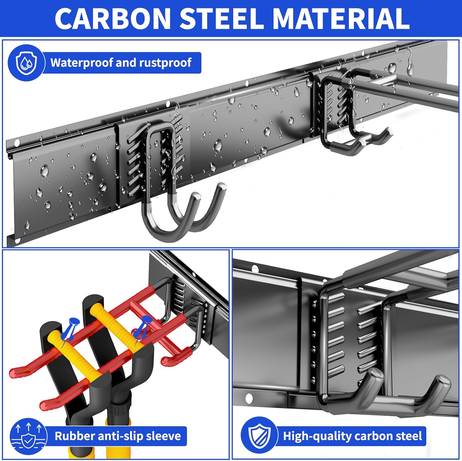 Garage Organization Tool Organizer Wall Mount, 48inch Heavy Duty Garden Tool Storage System, Easy Install With 6 Adjustable Hooks, For Home, Garage, Outdoor, Workshops (Black)