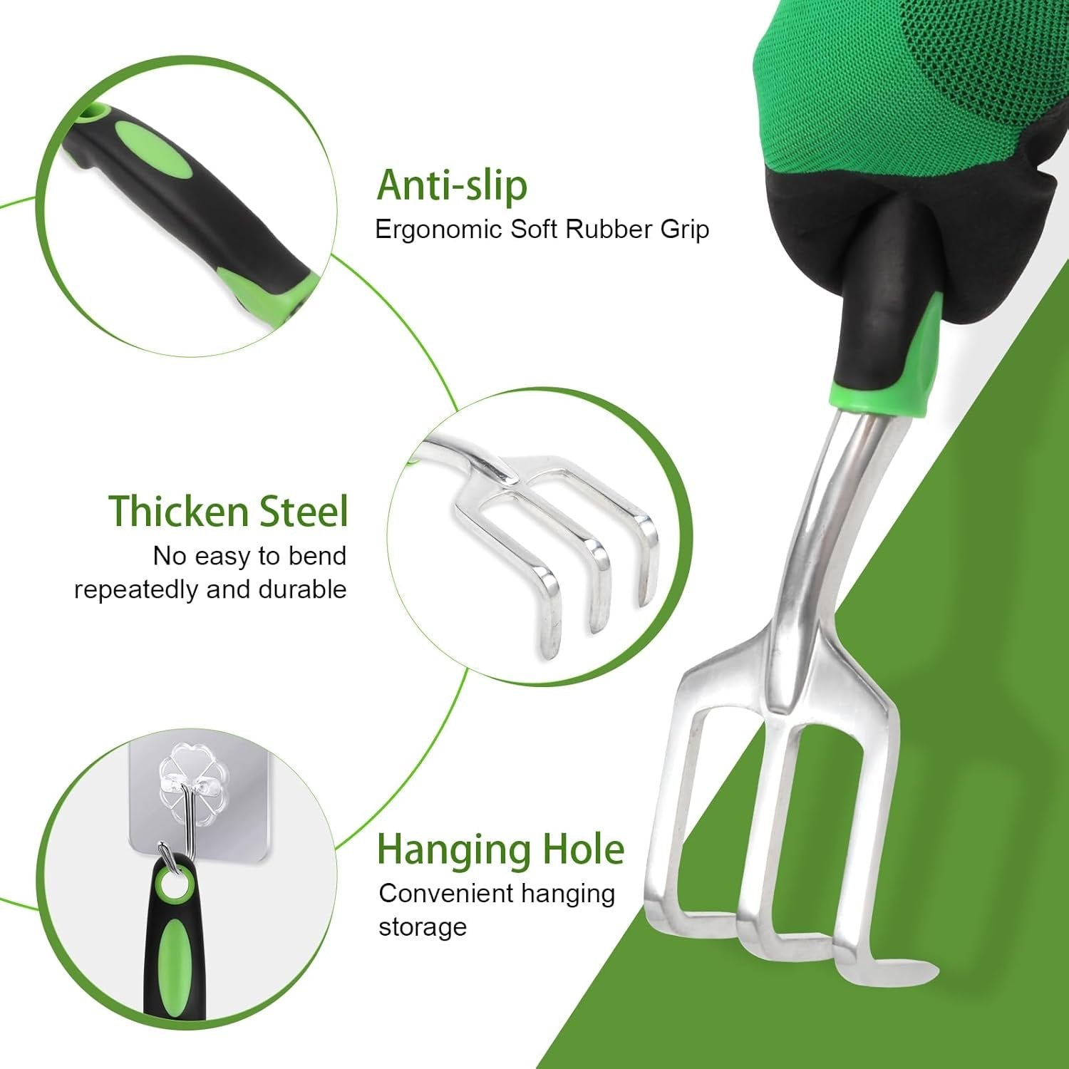 ๐ ๐๐ข๐๐๐ ๐๐๐ซ๐๐๐ง ๐๐จ๐จ๐ฅ๐ฌ ๐๐๐ญ: CAJMOLS Garden Tools Set includes all the essential tools needed for daily gardening tasks such as digging, planting, weeding, loosening, pruning, and more. With a variety of tools like gloves, trowels, cultivators, pruners, weeders, and a convenient tote bag, this set covers all your gardening needs. Perfect for any gardening scene in your garden, lawn, or yard, it provides a comprehensive solution for both beginners and experienced gardeners ๐๐ง๐ฅ๐๐ซ๐ ๐๐ ๐๐ญ๐จ๐ซ๐๐ ๐ ๐๐๐ : Our spacious bag keeps all your gardening tools neatly organized in one place. It features a large size and multiple pockets, providing ample space for storing all your necessary tools. Made of durable polyester, it can withstand harsh conditions. The garden tool organizer bag also includes external side pockets with wide elastic loops, enabling easy access and retrieval of tools. It serves as a versatile organizer, ensuring convenience and efficiency during gardening tasks ๐๐จ๐ฆ๐๐จ๐ซ๐ญ๐๐๐ฅ๐ ๐๐ง๐ ๐๐ซ๐ ๐จ๐ง๐จ๐ฆ๐ข๐ ๐๐๐ง๐๐ฅ๐๐ฌ: Gardening tools are designed with ergonomically shaped handles that provide a comfortable grip, reducing hand and wrist strain. The handles are made of non-slip rubber, ensuring a secure hold even with wet hands. The ergonomic design of the handles minimizes fatigue and allows for efficient and enjoyable gardening, helping you create the garden of your dreams with ease ๐๐ข๐ ๐ก-๐๐ฎ๐๐ฅ๐ข๐ญ๐ฒ ๐๐ง๐ ๐๐ฎ๐ซ๐๐๐ฅ๐ ๐๐๐ญ๐๐ซ๐ข๐๐ฅ๐ฌ: Lightweight aluminum alloy and heavy duty stainless steel ensure durability, rust and wear resistance for garden tools.The sturdy construction and high-quality materials make them reliable for cutting through thick weeds, tackling tough roots and soil. You can trust these tools to withstand the challenges of gardening and provide you with long-lasting use ๐๐ฑ๐๐๐ฅ๐ฅ๐๐ง๐ญ ๐๐๐ซ๐๐๐ง๐ข๐ง๐ ๐๐ข๐๐ญ: Gardening tools set is an ideal gift for both gardening enthusiasts and beginners. With its professional, comprehensive, and durable design, it is suitable for men and women of all ages. Whether it's for birthdays, holidays, Mother's Day, Father's Day, Thanksgiving, Easter, Christmas, or anniversaries, this 8-piece tool set is a thoughtful and practical gift. Give the gift of efficient and enjoyable gardening to your loved ones with our high-quality tool set