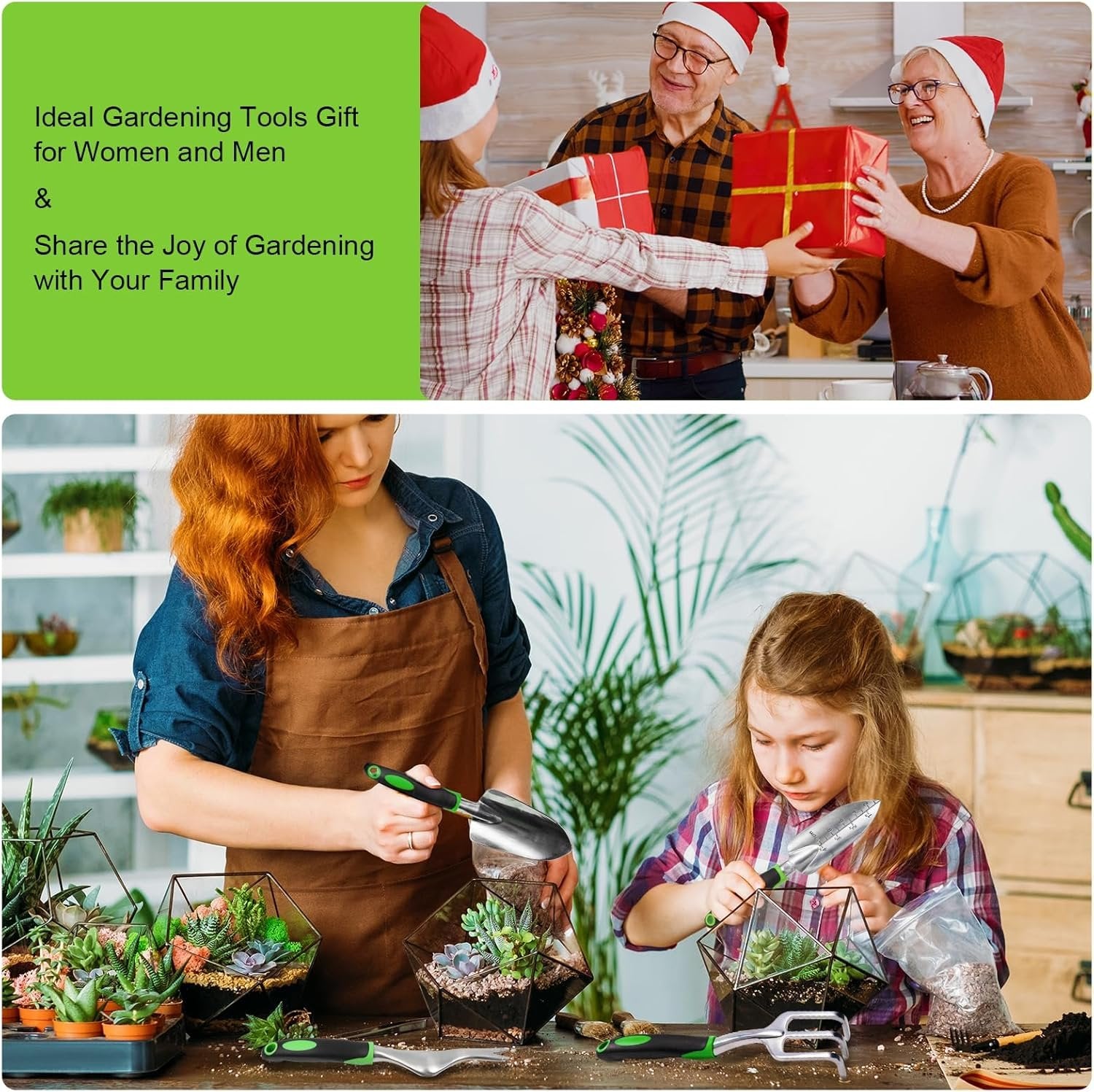 Garden Tools Set,8 Piece Heavy Duty Gardening Tools with Soft Rubberized Non-Slip Handle, Durable Aluminum Alloy Garden Hand with Pruning Shears & Large Garden Tote, Ideal Gifts for Women Men
