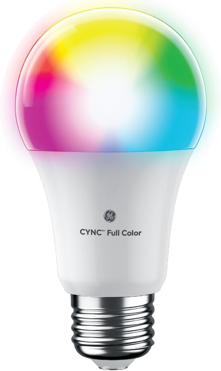 GE Cync Full Colour Direct Connect Smart Bulb A19, 60W Replacement, Bluetooth/Matter/WiFi Enabled, Works with Alexa, Google Assistant Without Hub, 1-Pack
