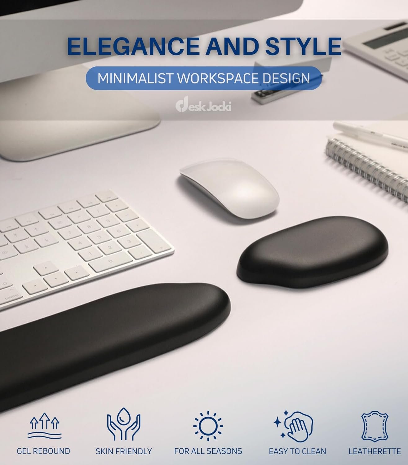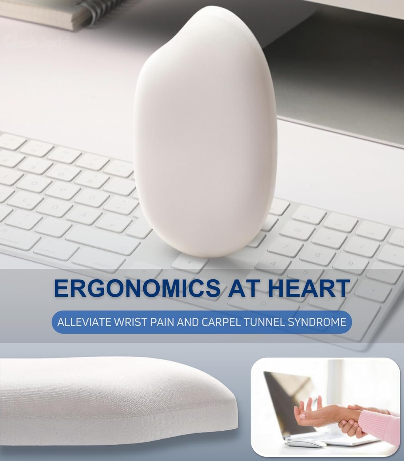 【SENSUAL FEELING】 Experience a luxurious sense of comfort with DeskJocki Gel Silicone Wrist Rest combo perfectly balances support and comfort. The wrist supports feel soft and natural to the touch, providing a soothing experience akin to a therapeutic stress ball or natural skin feeling. The super soft Gel Wrist Rest Pad set is not only comfortable but also stress-relieving, perfect for long hours of work or gaming sessions. 【WRIST PAIN RELIEF】 Beyond comfort, the gel wrist rest offers significant health benefits. The hand rests have an ergonomic design that encourages a proper forearm to hand alignment, which can significantly reduce the risk of repetitive stress disorders. By using the palm rests regularly, it aids in preventing joint and wrist problems and provides relief from associated pain, such as that caused by rheumatoid arthritis and carpal tunnel syndrome.