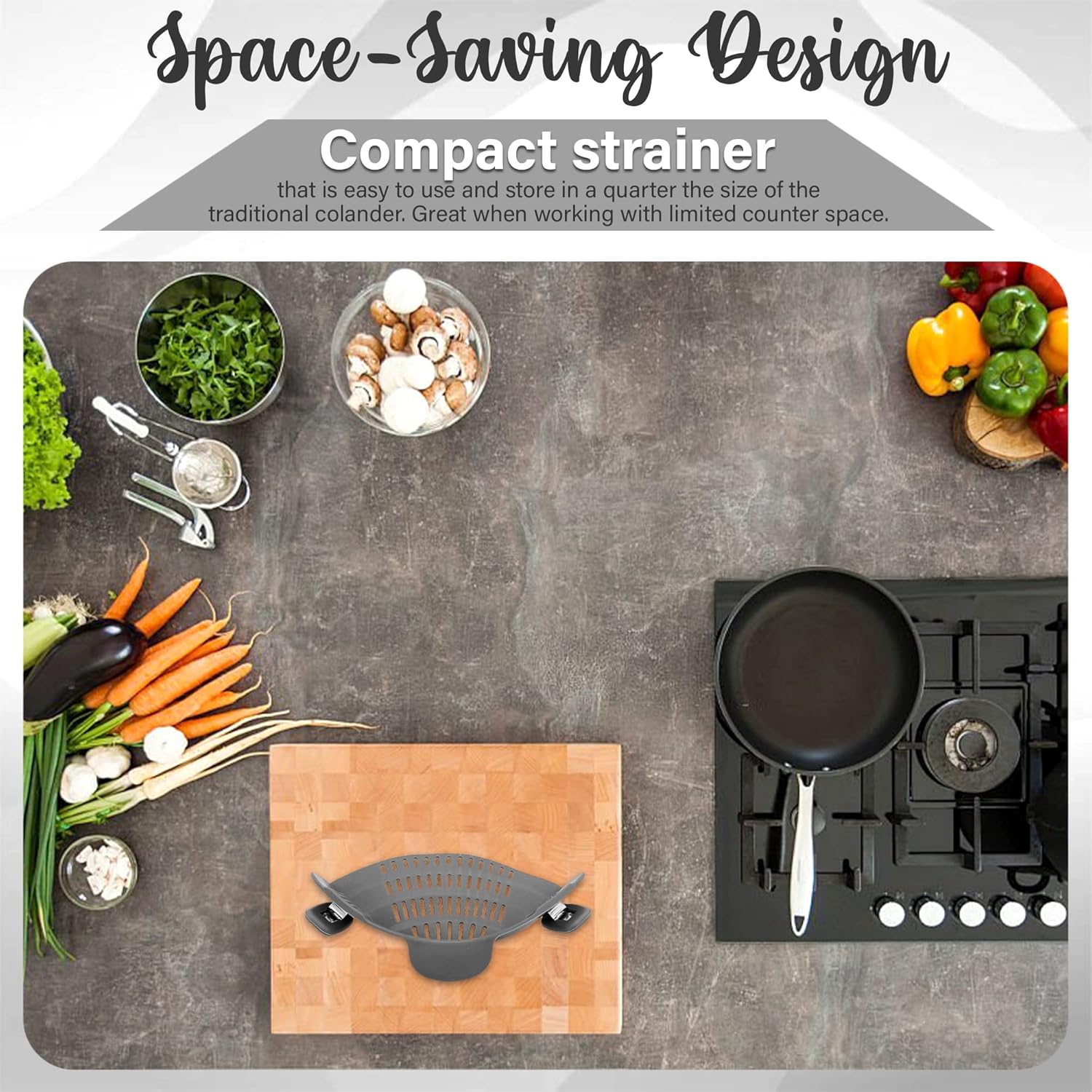 Gemsie Strainer and Pasta - Adjustable Silicone Clip On for Pots, Pans, Bowls, Kitchen Gadget, Gadgets Home, Must Haves, Fits All Bowls Pots Grey 9.05''x4.92''x2.63''