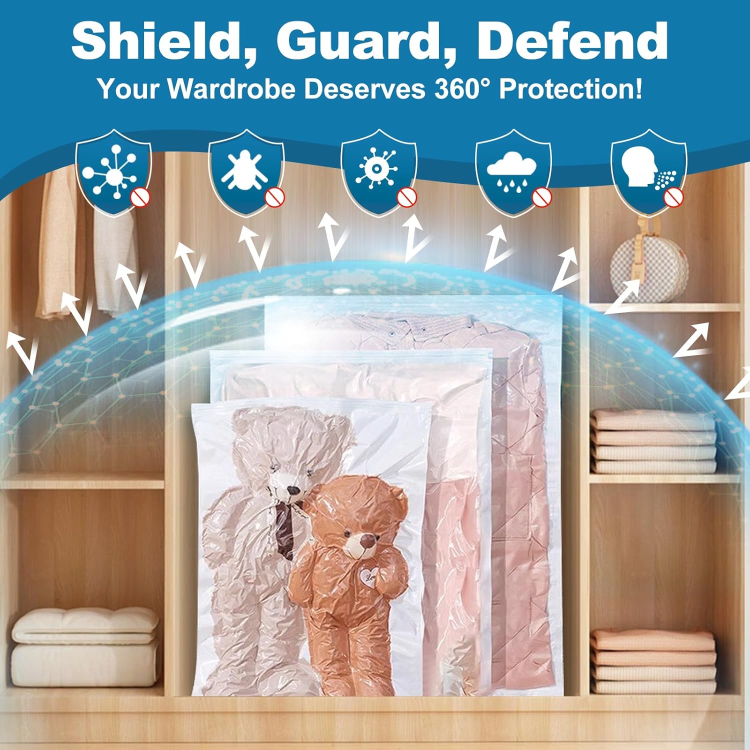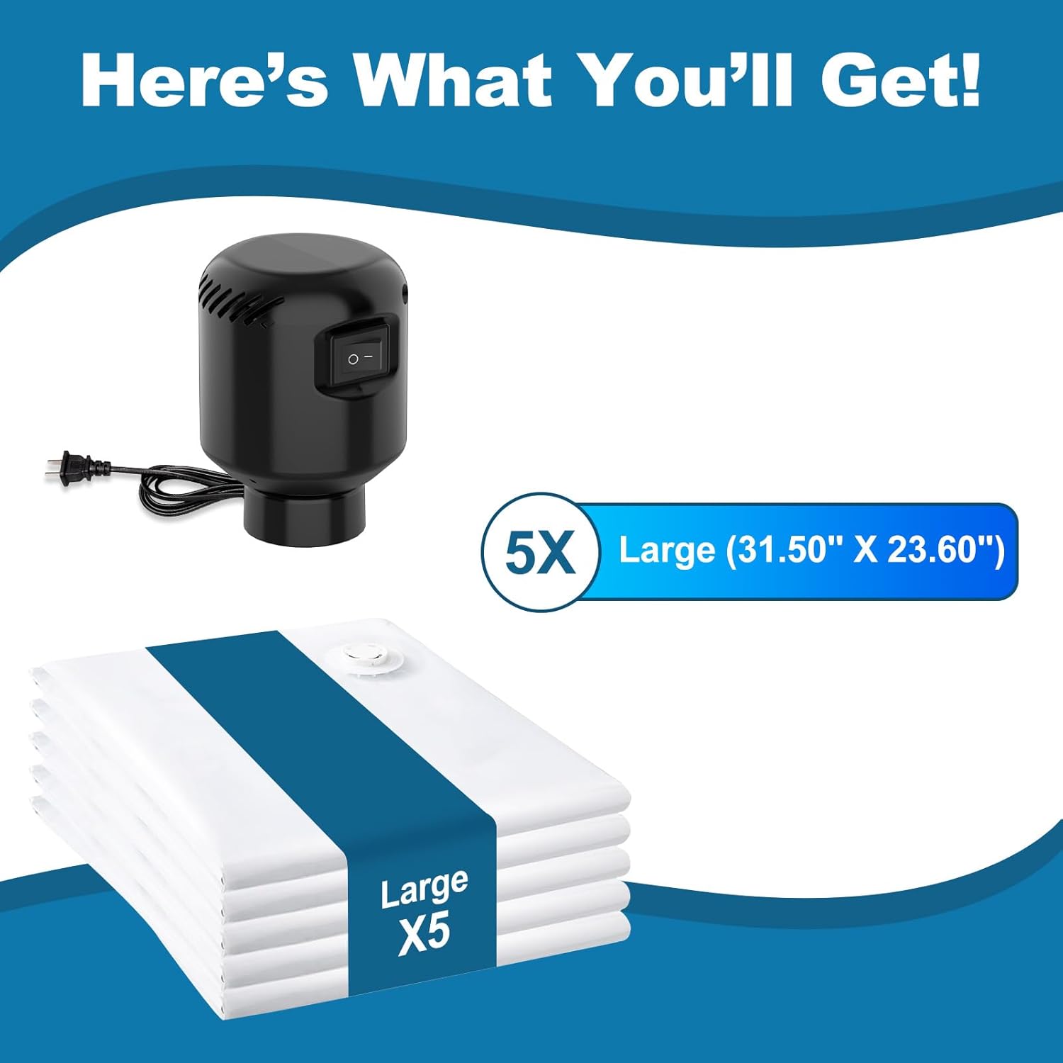 GGH 5 Pack Vacuum Storage Bags with Electric Pump, Large Vacuum Seal Bags for Clothing, Comforters, Blankets - Space Saver Compression Bags for Travel & Home Organization