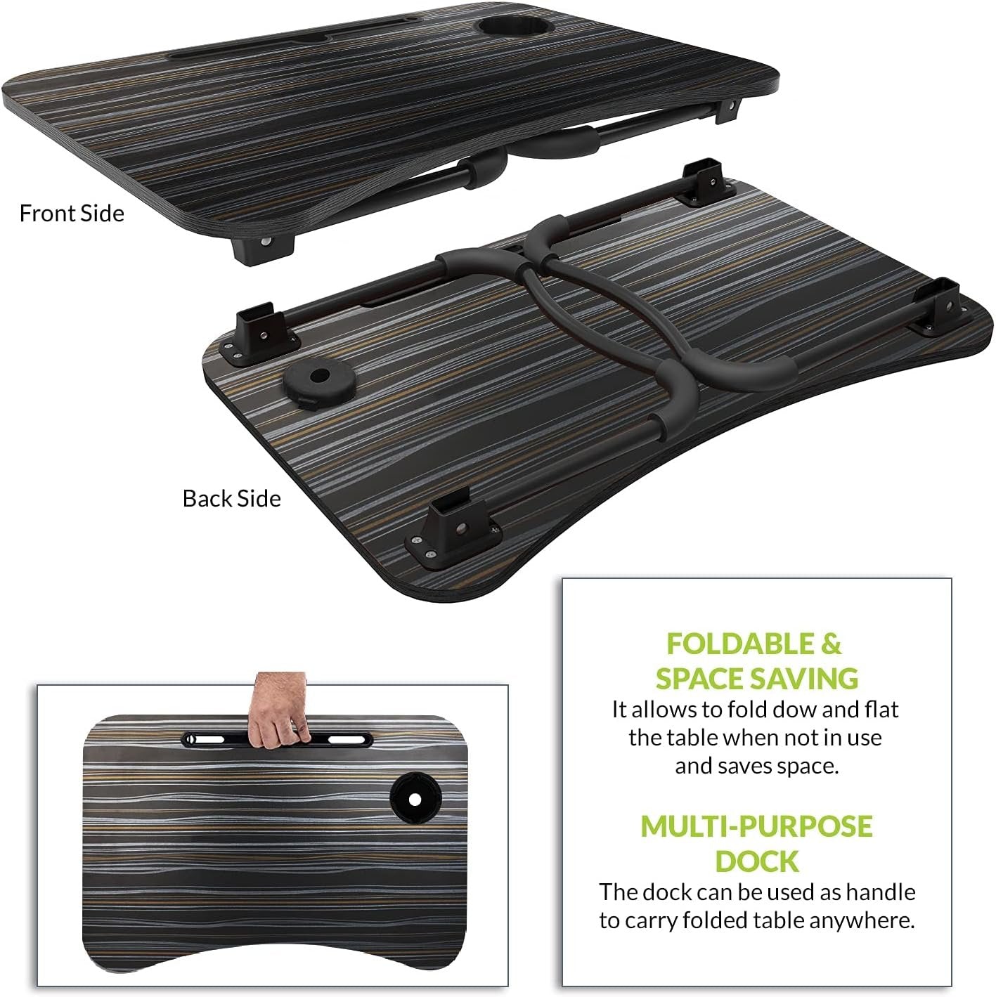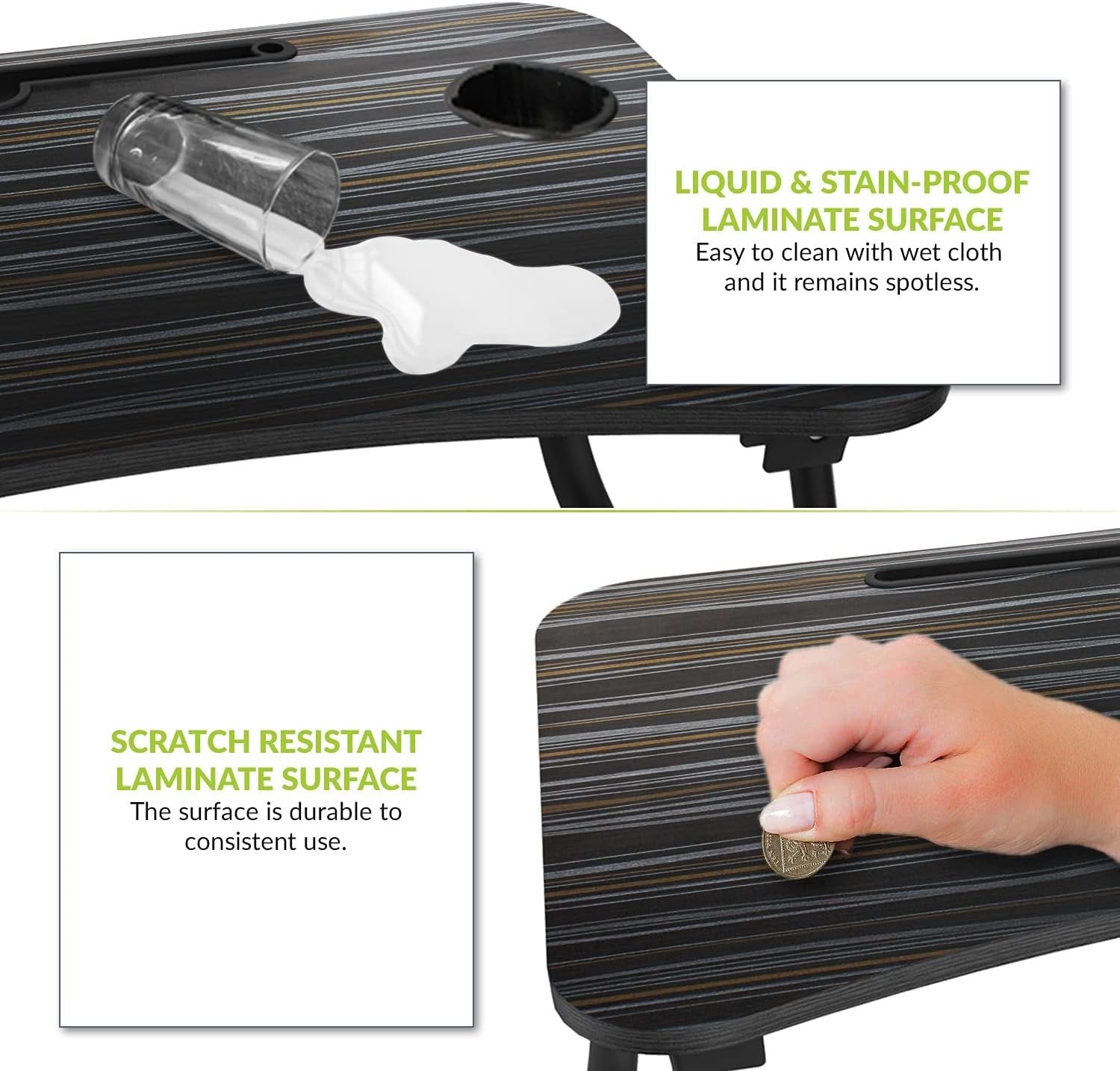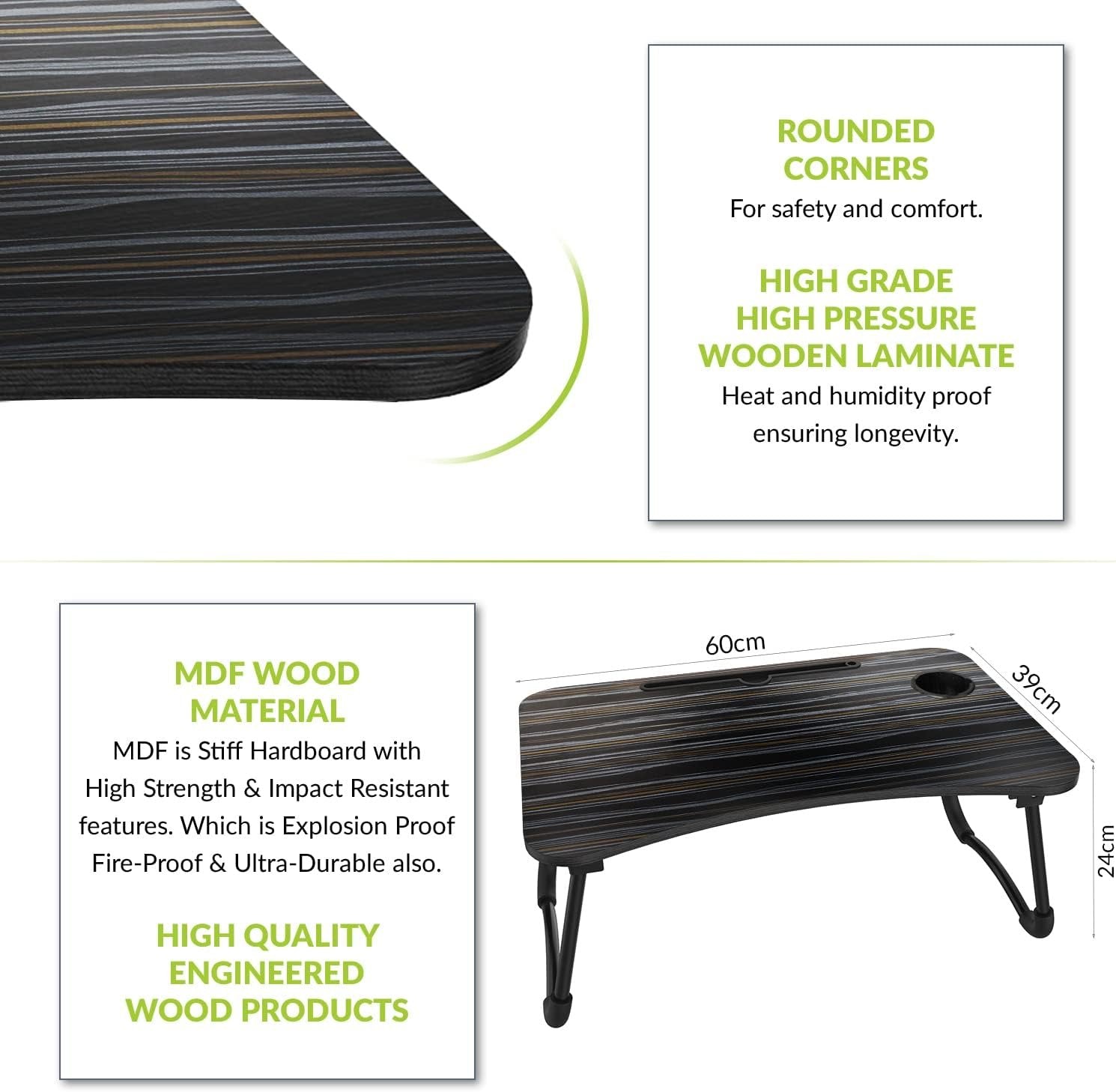 Gizga Essentials Foldable Laptop and Study Table for Student and Kids with Cup, Tablet and Mac Holder |Office Table | Bed Table| Breakfast Table, Portable/Ergonomic & Round Edges/Non-Slip Legs, Black