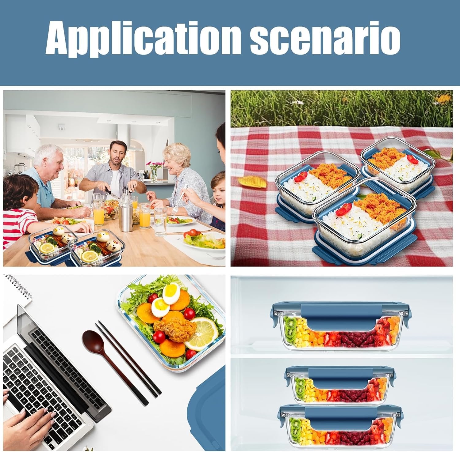 ã€THREE SIZES GLASS CONTAINERS】Food containers set incluedes 1040ml 1 pack, 600ml 2 pack and 420ml 2 pack to meet your needs for detailed classification, Also perfect for meal prep, outdoor, picnic, barbecue, leftover and more. ã€HIGH-QUALITY GLASS DOES NOT CONTAIN BPA】Meal prep container made of high-quality borosilicate glass , it can easily handle whether it is frozen in the refrigerator or microwaved (heated without a lid). glass containers are bpa-free, ensuring the health and safety of you and your family ã€AIRTIGHT AND LEAKPROOF】The glass food container is equipped with a locking airtight lid to ensure no leakage or spillage, locking the original flavor of the ingredients, moisture-proof and insect-proof, keeping freshness within reach ã€EASY TO CLEAN】The surface of the food storage container with lid is smooth and delicate, saving time and effort when cleaning, and it will be clean with just one wipe. also suitable for dishwasher cleaning ã€SAVING SPACE】Meal prep container easily maximize the use of space, make your kitchen and storage room instantly organized, and save valuable space