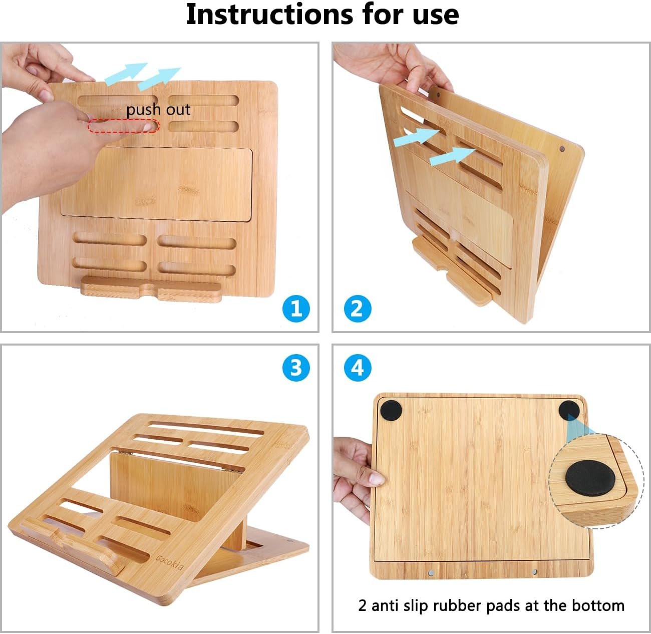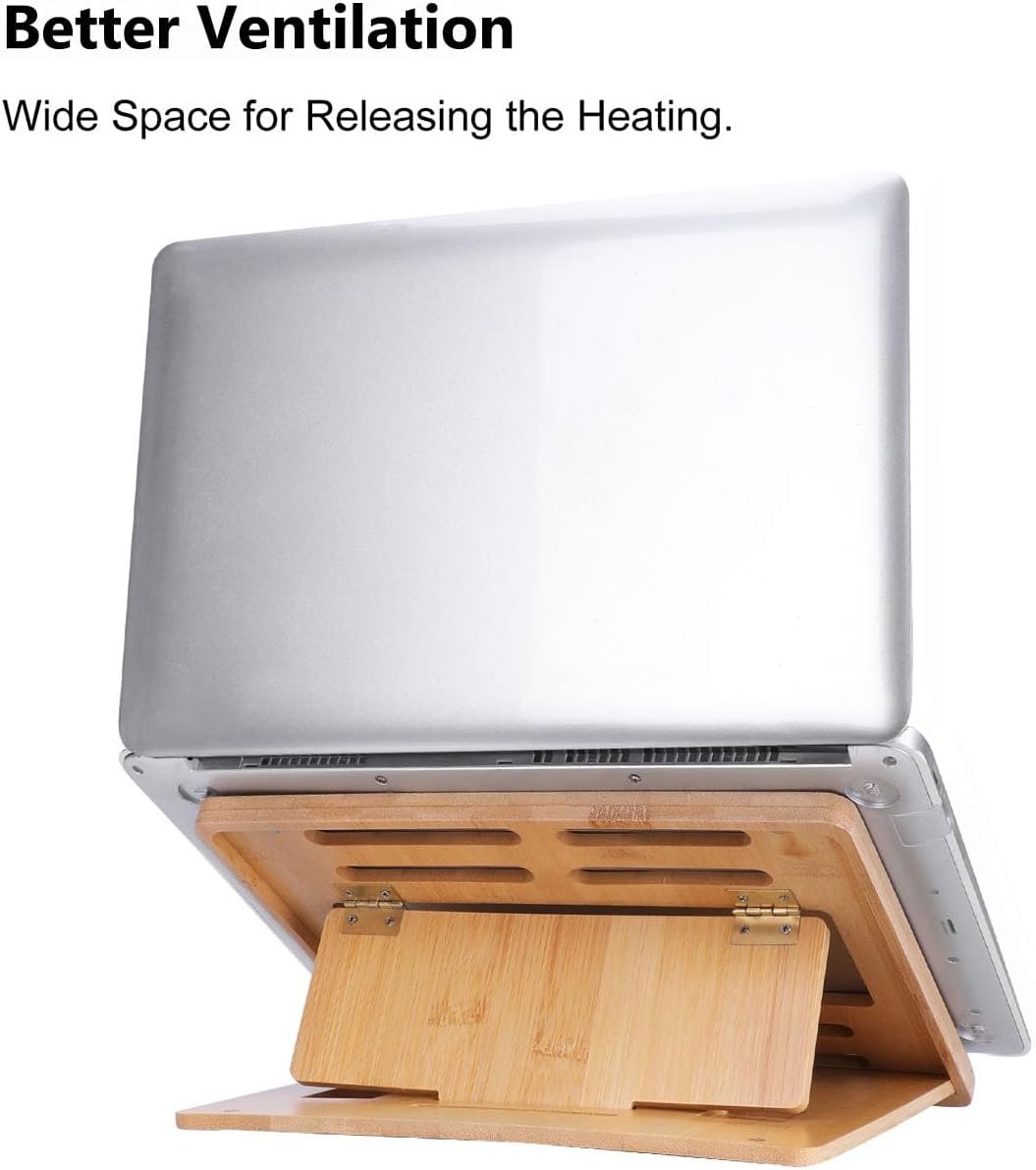 Gocokia Bamboo Fodable Laptop Notebook Riser Stand Desktop Adjustable with 4 Angles Notebook Mount Holder, Folding Laptop Cooler Stand for Macbook,Tablet,Kindle