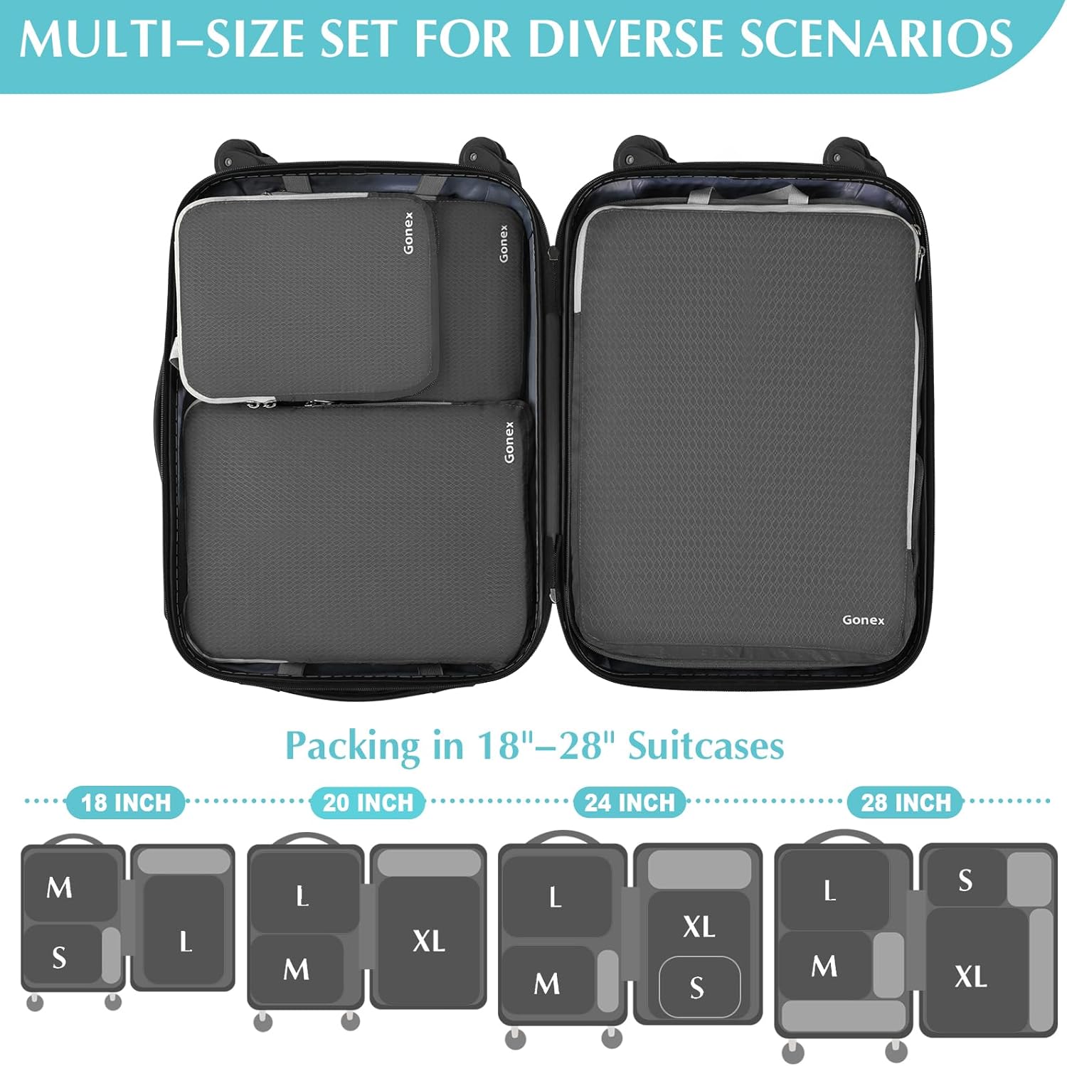 Gonex 4 Piece Set Storage Suitcase Storage Bag Portable Cosmetic Clothing Expandable Cubes, Packing Cube Set Travel Organizer, Grey