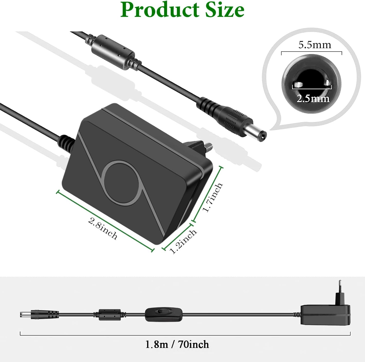 Gonine 12V Power Supply 2A 24W AC Adapter Wall Charger AC 100-240V to DC 12Volt 2A 1.5A Converter for LED Strip Lights, CCTV Cameras, BT Speaker, Router