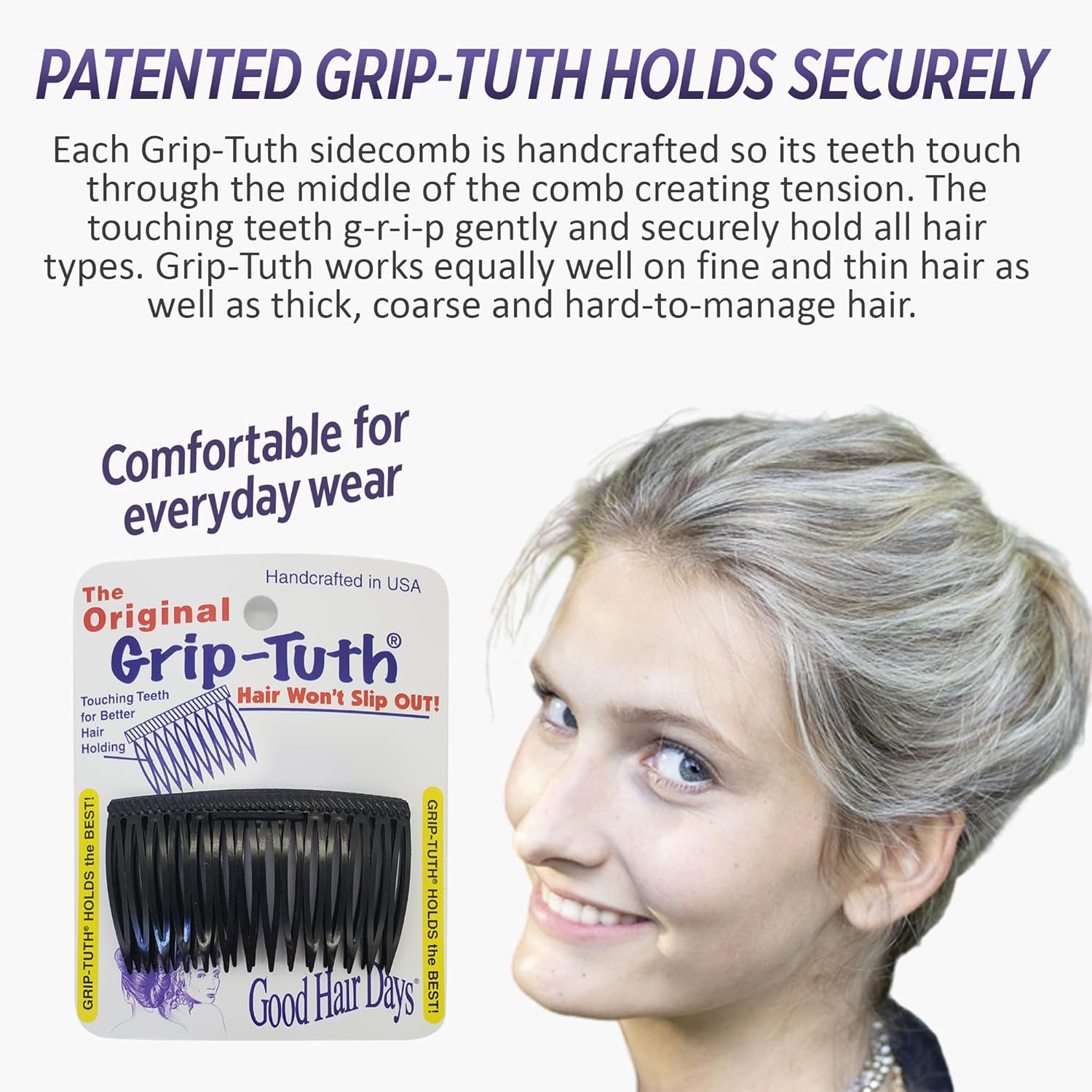 Good Hair Days Grip-Tuth Shorty Combs - Decorative & Styling Combs for Fine and Thin Hair (Crystal, 2 Count - 1 3/4 inch)