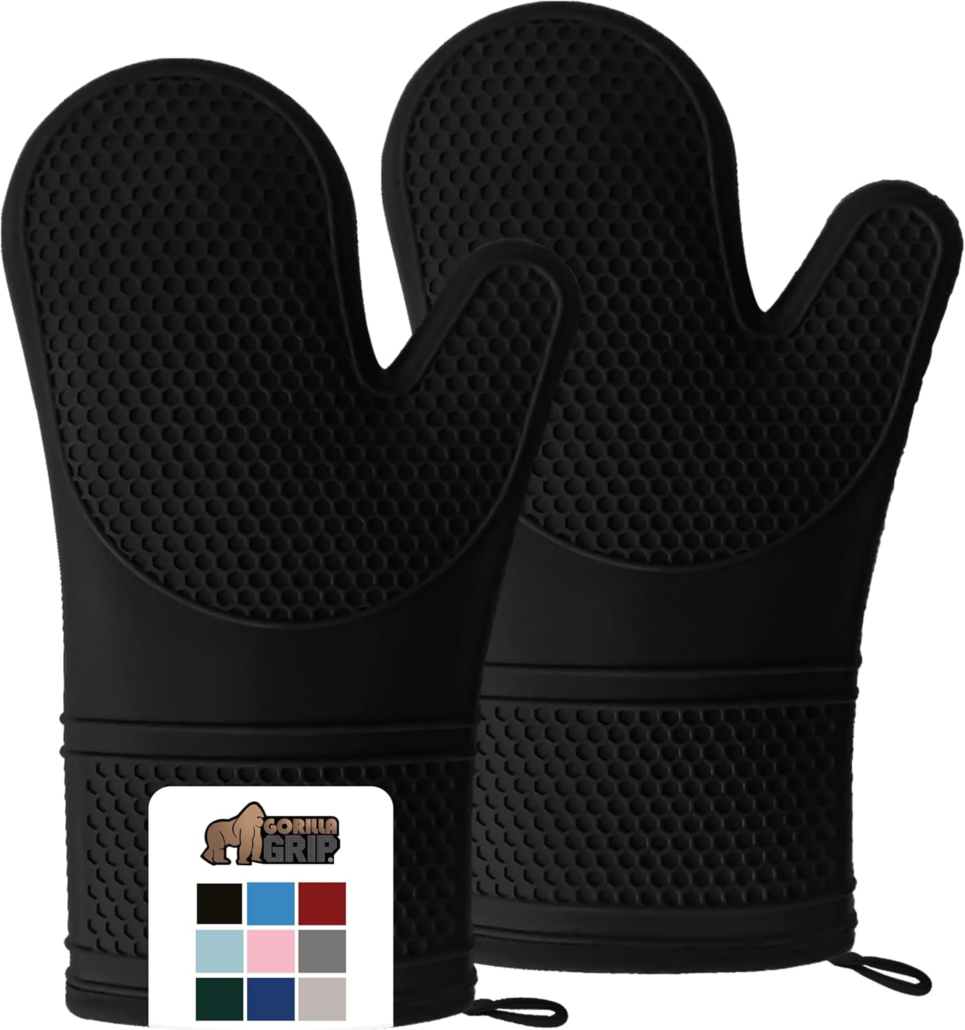 GORILLA GRIP Heat Resistant Durable Silicone Oven Mitts, BPA-Free Protective Grilling Potholders, Soft Cotton Lining, Flexible Waterproof Cooking Mitt Set, Kitchen Home Essentials, 12.5x8.3, Black