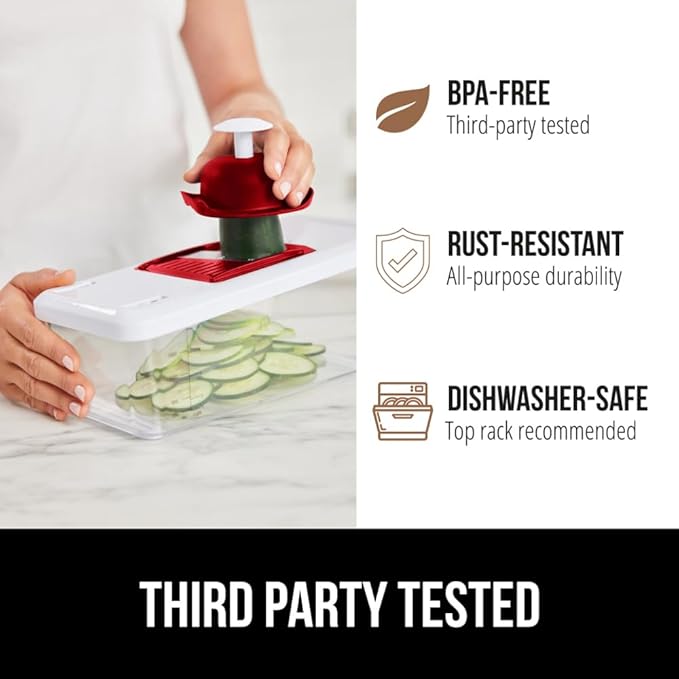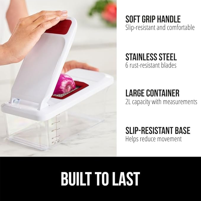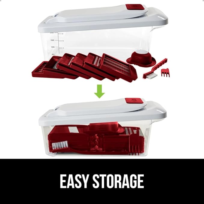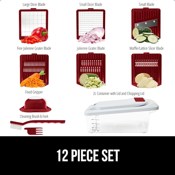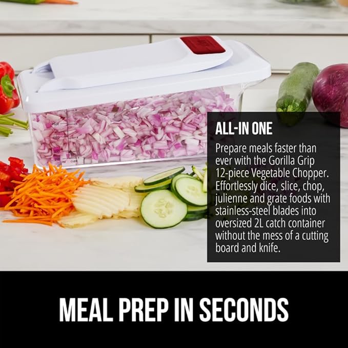GORILLA GRIP Heavy Duty 12-in-1 Vegetable Chopper, 6 Blades, Food Choppers with Container, Cucumber Mandoline Slicer, Dice Onions, Slice Veggies, Chop Salad, Home Essential Kitchen Gadgets Tool, Red