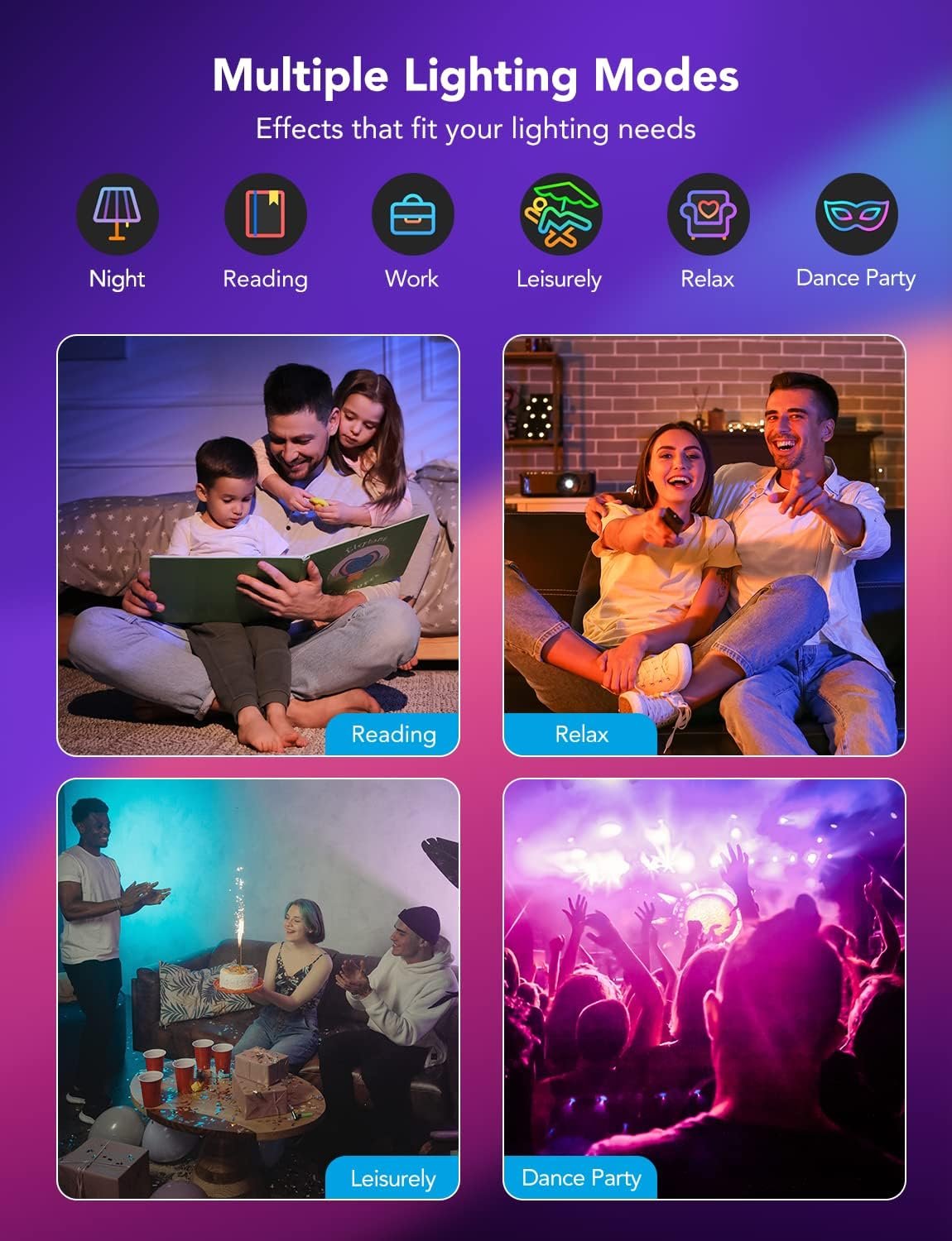 Flexible Connectivity: These smart recessed downlights support Wi-Fi and Bluetooth direct control for more convenience. The connectivity options allow a more stable connection, unlike lights that only support Wi-Fi or Bluetooth. Multiple Lighting Options: Select from 16 million colors and 1-100% dimmable brightness to make your space feel more vibrant. For more natural lighting, there are tunable 2700k-6500k warm white to cool daylight options for reading or relaxing. Multi Scene Modes: Access an exciting variety of 65 preset scene modes inspired by nature, holidays, and more, with a simple tap on the Govee Home App. There is also a selection of fun music modes that match up with your favorite music(Govee Music Sync Box Required). All-In-One Group Control: There is no need to change the colors or brightness manually. Use the Group Control feature to control all of your pot lights using the app. You can also adjust the lights in separate rooms by making them their own groups. Two-Way Control: You can control your smart ceilingt lights on Govee Home App with a simple tap. These lights also support Alexa/Google Home to access Voice Control. *2.4GHz Wi-Fi only.