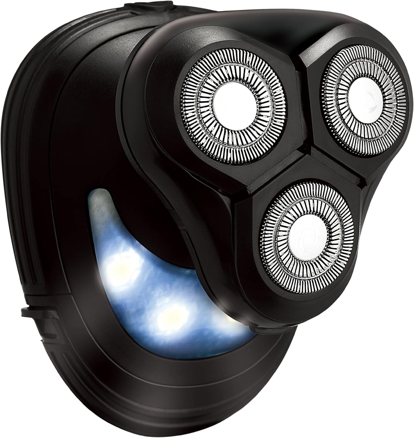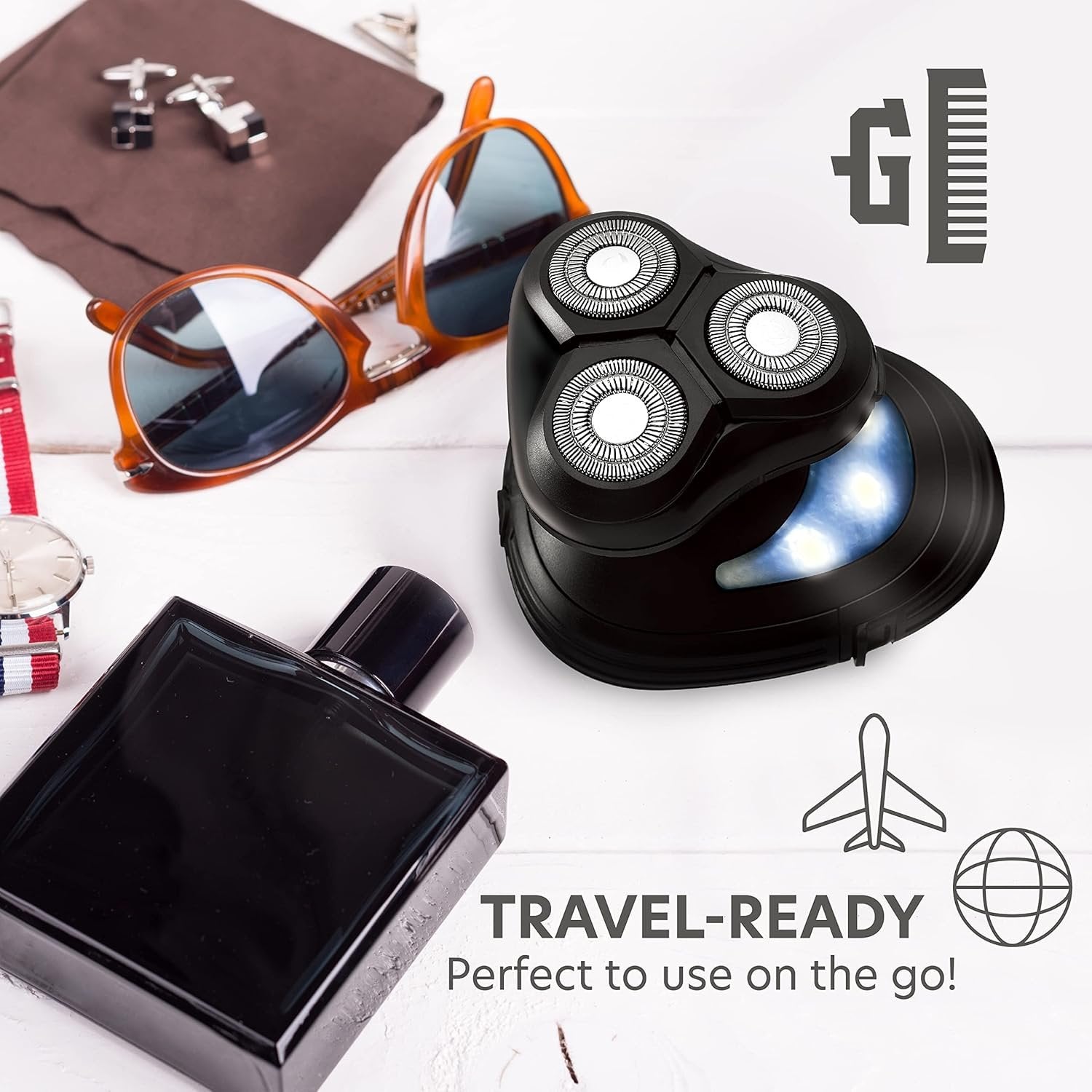 Groom Essentials 3D Rotary Face and Head Shaver for Men, LED Light, Battery-Operated Compact, Cordless Electric Shavers for Men, 3 Floating Heads - Electric Razor, Mens Shaver with Ergonomic Handle