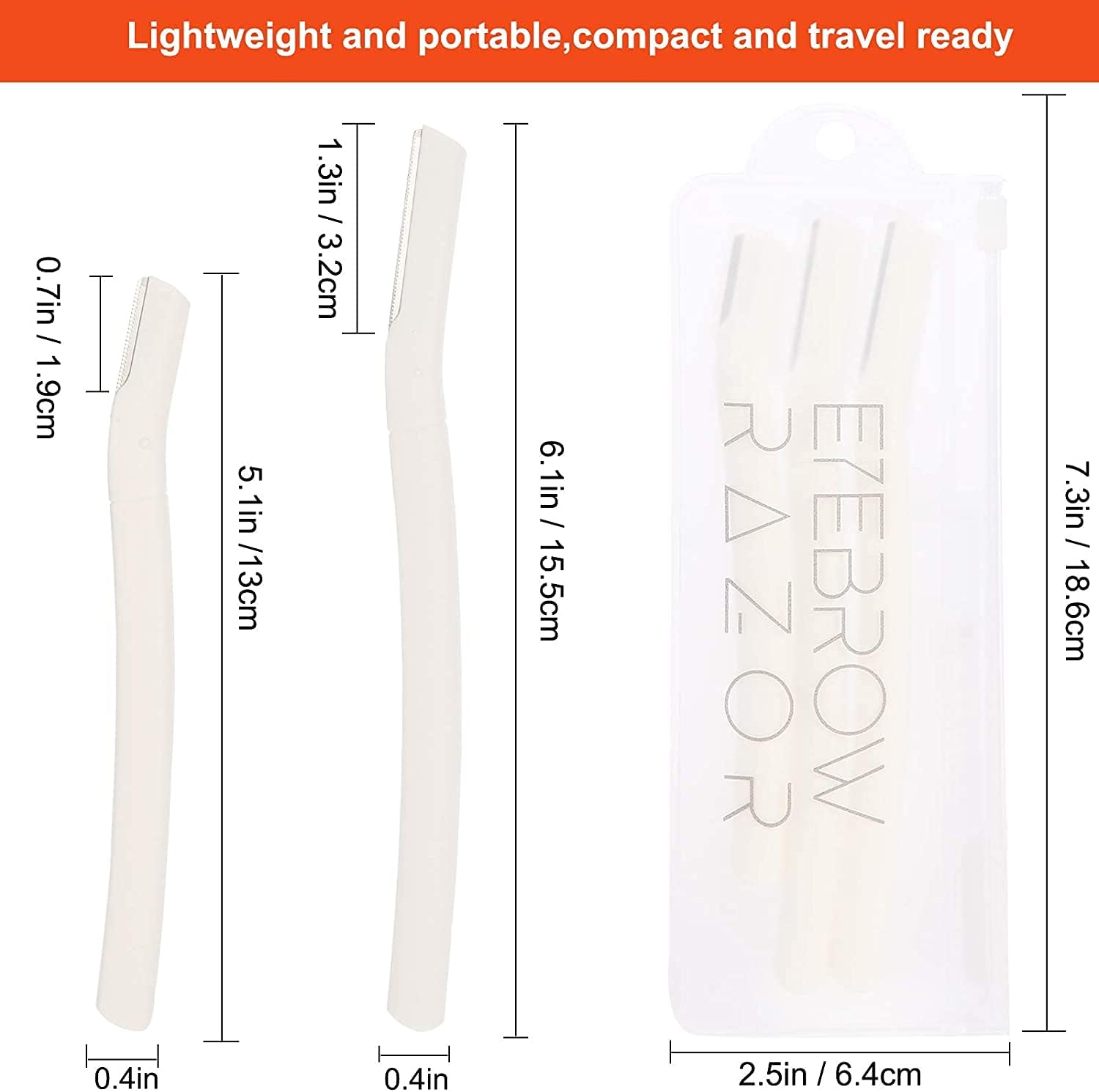 ❤Safe,effective and super easy to use at home.The non-invasive is the safest for personal home skin care use .Safe blade control allows the blade to glide gently on your skin with light strokes. Designed with safety features that offer maximum blade surface contact while safeguarding skin from injury, giving you a professional dermaplaning treatment right in your home ❤Say goodbye to peach fuzz.3 pack of Professional eyebrow razors can easily and quickily remove fine hairs,peach fuzz ,and any unwanted hair that cause your trouble and embrassment. ❤Say hello to smooth and nurtrient absorbient skin .The eyebrow tool gently exfoliates facial skin by removing the build-up of dead cells , allows for easy absorption of serum,provides a clean base for applying cream, makeup,giving you skin a smoother look and feel ❤All in one multipurpose tool .With these safe stainless steel blades ,it can achieve hair removal, exfoliation,eyebrow razor,eyebrow shaper,face shaver,men's shaving razors,women's bikini trimmers.It is a good choice for beginners to use on all area’s of the face whether it’s the forehead, cheeks, chin ,eye brow, upper lip areas ,even can use in neck or elsewhere with any un-necessary hairs ❤Light and portable.It is light and small. You can carry easily. And you can put anywhere you want, such as: cosmetic bag, bedroom, bathroom, dressing table, hotel, etc. Because of the sharp blade, please cover the protective cover when you don't need it, and place it in a place that children cann' t reach