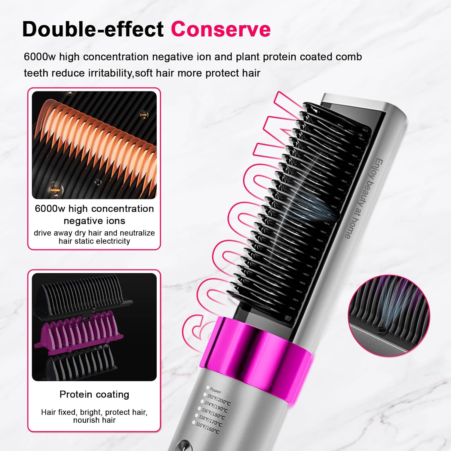 Hair Straightener Brush Negative Ionic,Lightweight Straightening Hot Comb Curler 5 Temps Settings 320°F to 392°F 20s Fast Heating,Professional Styling Tools for Silky Smooth, Frizz-Free Hair