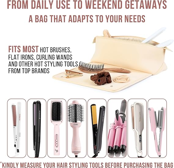 Hair Tools Travel Bag and Heat Resistant Mat for Flat Irons, Straighteners, Curling Iron, and Haircare Accessories, 2-in-1 design, with Interior Pockets, Portable Organizer