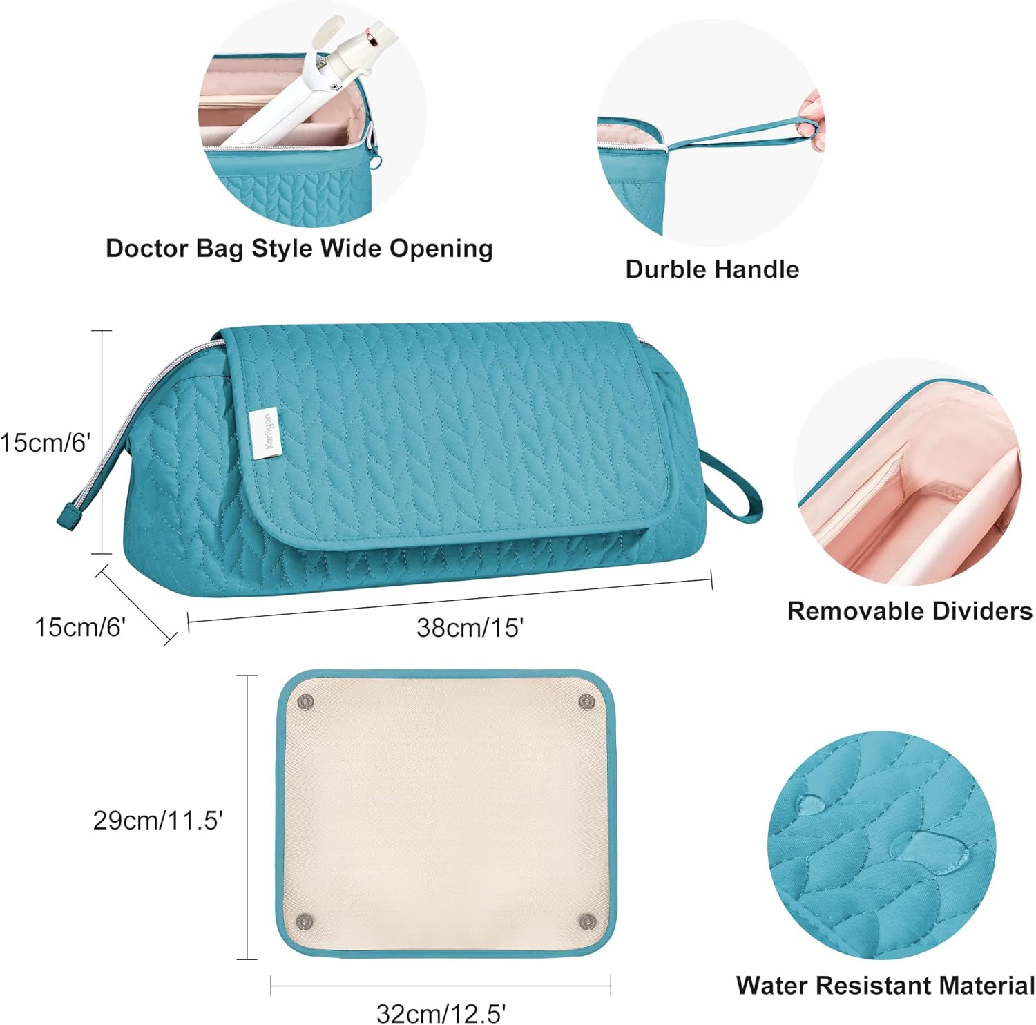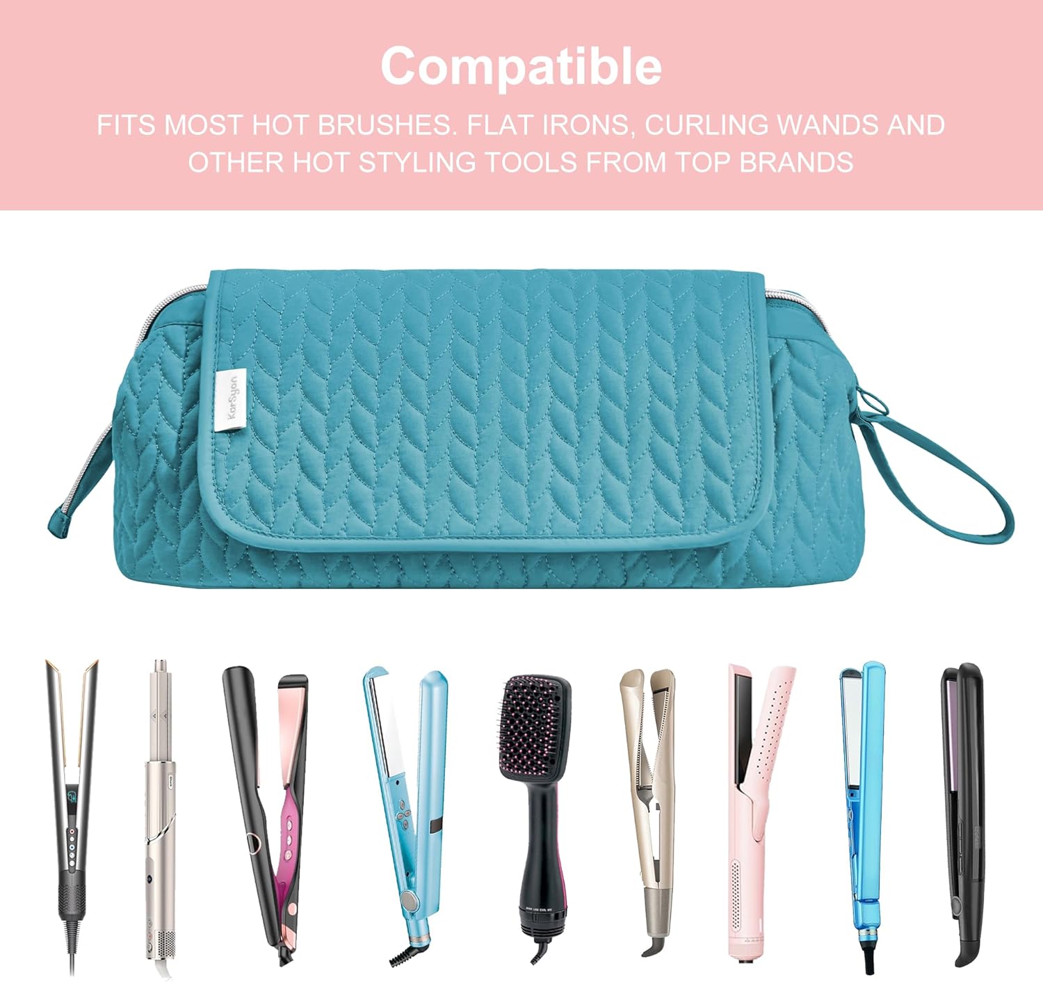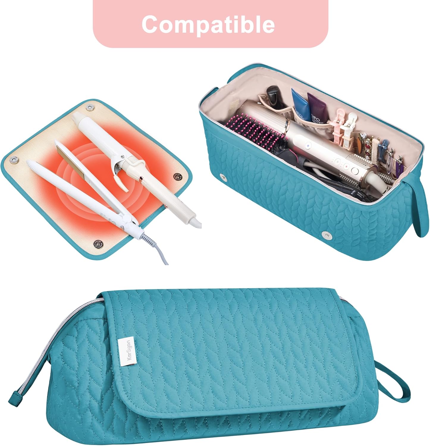 Hair Tools Travel Bag Karsyon Heat Resistant Mat Case Hot Tools Straightener, Curling Iron,Hair Dryers,Haircare Accessories Travel Essentials for Women 2 in 1 Organizer Bags(Teal)