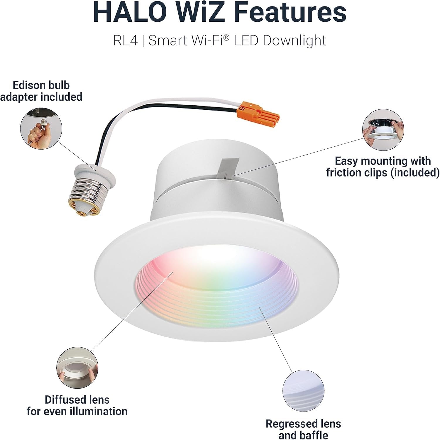 FULL CUSTOMIZATION: Use the WiZ app to group, schedule, dim wirelessly, sync music, and personalize your smart LED lighting with white tuning and 16M+ colors. Pair with a switch using WiZ Click. Professional features available in the WiZ Pro app MATCH YOUR ROUTINE: SpaceSense motion detection activates the recessed lights with movement, seamlessly aligning with your day-to-day while maximizing energy efficiency. Integrate with voice control and other smart home products for enhanced automation EFFICIENT & RELIABLE: Expect 50,000 hours of maintenance-free operation in damp or wet locations with long-life LEDs. Meets Air-Tite, ENERGY STAR, and CA Title-20 compliance for energy savings ESTABLISHED & REPUTABLE: HALO products are designed and tested in the USA and have been a contractor-preferred brand for nearly 70 years. We offer superior quality, reliability, and US-based customer service. Backed by a 5-year limited warranty