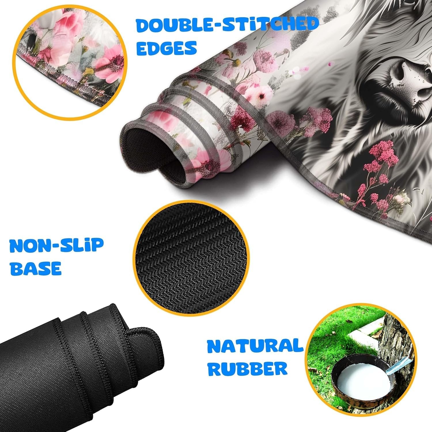 HaoSiTeck 4-Piece Extended Large Mouse Pad Set for Women Men with Highland Cow Design Includes 35.4 x 15.7 XXL Large Mouse Pad Keyboard Wrist Rest Mouse Wrist Support and Coaster for Office Home
