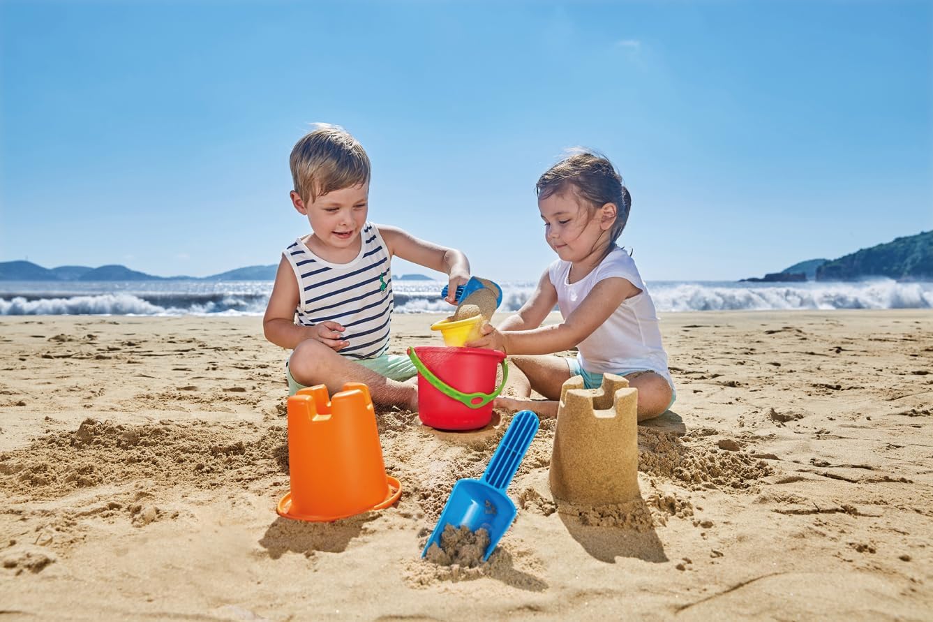 Versatile Play: This 5-in-1 set features a sand shovel, bucket, sand mold, rake, and water scoop, perfect for building castles and exploring creativity. Educational Fun: Encourages imaginative play, and promotes outdoor activity, making it an ideal choice for developing young minds. Quality Construction: Made from durable and safe materials, this beach set is designed to withstand hours of play while ensuring your child's safety. Lightweight and durable beach toys designed for kids aged 18 months and up. Compact & Portable: Lightweight and easy to carry, the set is perfect for beach trips, picnics, or backyard fun. A complete set of beach toys for endless sand play and fun. Attractive and cibrant colours capture children's attention and spark their imagination.