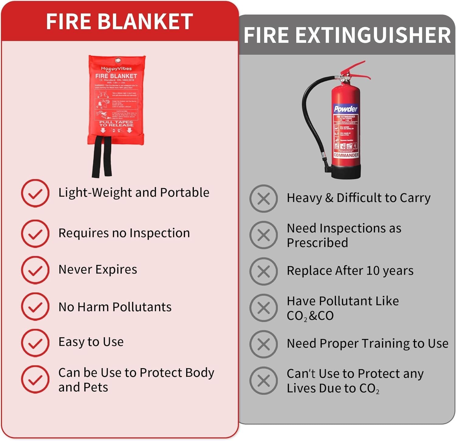 HappyVibes Emergency Fire Blanket for Home - 4 Pack Fiberglass Fire Extinguishing Blanket 40x40 Inches - Fire Blankets Emergency for Home, Kitchen, School, Office, Car, and Grill