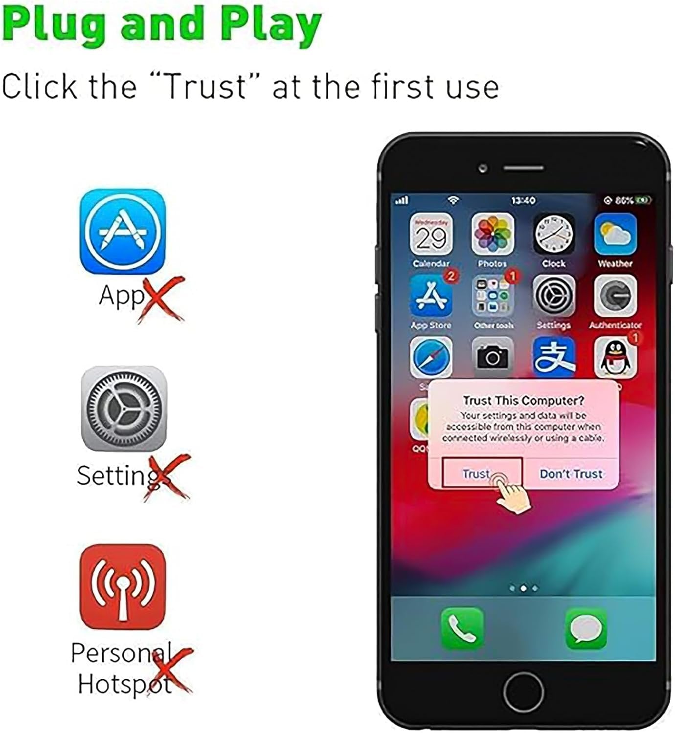 【1080P HD Display】The resolution of the for iPhone to HDMI adapter is up to 1080P/60HZ, which supports mirroring the content displayed on the device screen (including images, movies, games and applications, presentations, websites, slideshows, etc.) to HDMI-equipped devices. television, monitor, projector or other display. High-definition video signal transmission, clear and delicate picture quality. 【How to use】 1. Adjust the TV to the HDMI channel and write down the interface number; 2. Plug the for iphone to hdmi adapter into the mobile phone/tablet port (it is best to remove the protective cover for the mobile phone/tablet); 3. Connect the HDMI power cord to for apple to hdmi adapter to connect (note: HDMI power cord needs to be purchased separately); 4. Plug the other port of the HDMI power cord into the TV interface number. 【Supported Applications】The for iPad to HDMI adapter supports various video applications, such as YouTube, Facebook, IDMB and video calls from Skype, Face-Time, Whats App, etc. But please note that this Lightning to HDMI adapter for iPhone does not support some paid apps such as Netflix, Prime video, Amazon video, HBO go, iTunes, HULU, etc. 【Plug and Play】The for Apple to HDMI adapter does not require the installation of any drivers, software or applications, supports hot swapping, plug and play. Just plug in the charging cable and power adapter to charge the adapter, then click the "Trust" button after connecting all your devices and wait for the for apple adapter to connect automatically. 【Wide Compatibility】For apple to digital av adapter is suitable for iPhone 14/14pro max/13/1211/11 Pro/11 Pro Max, iPhone X/XR/XS/XS Max, iPhone 8 7 6 Plus, iPhone 5/5S / 5C / SE 2020, iPad, iPod, etc., supports all iOS versions (not compatible with USB-C devices).