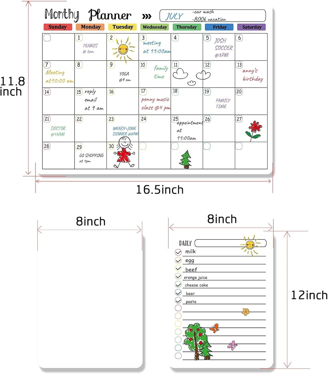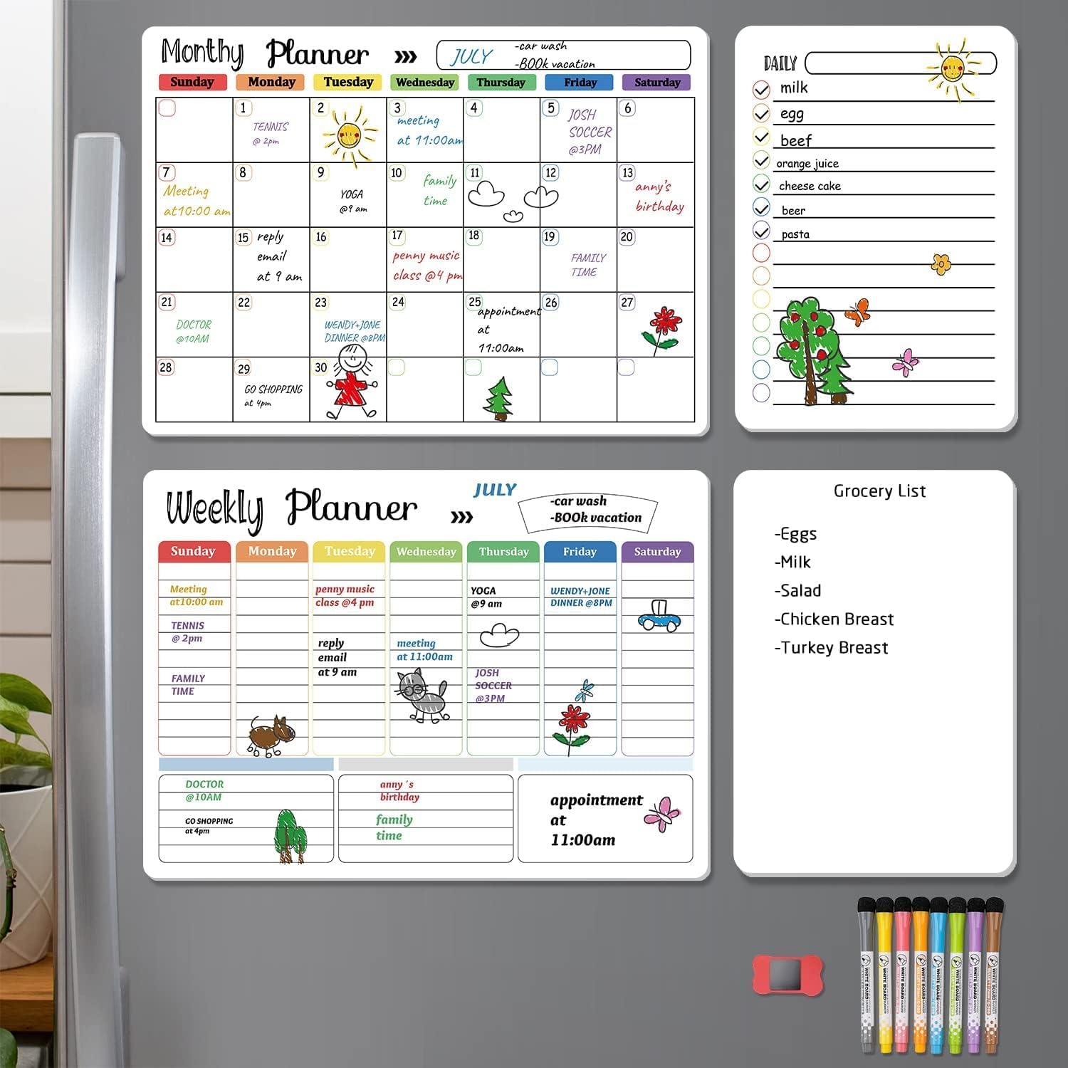 Hivillexun Magnetic Dry Erase Calendar Whiteboard Set (4-Pack) for Home and Kitchen, with Monthly and Weekly Views (16.5” x 11.8”), Magnetic Whiteboard and Daily Planners (12” x 8”) 8 Markers & Eraser