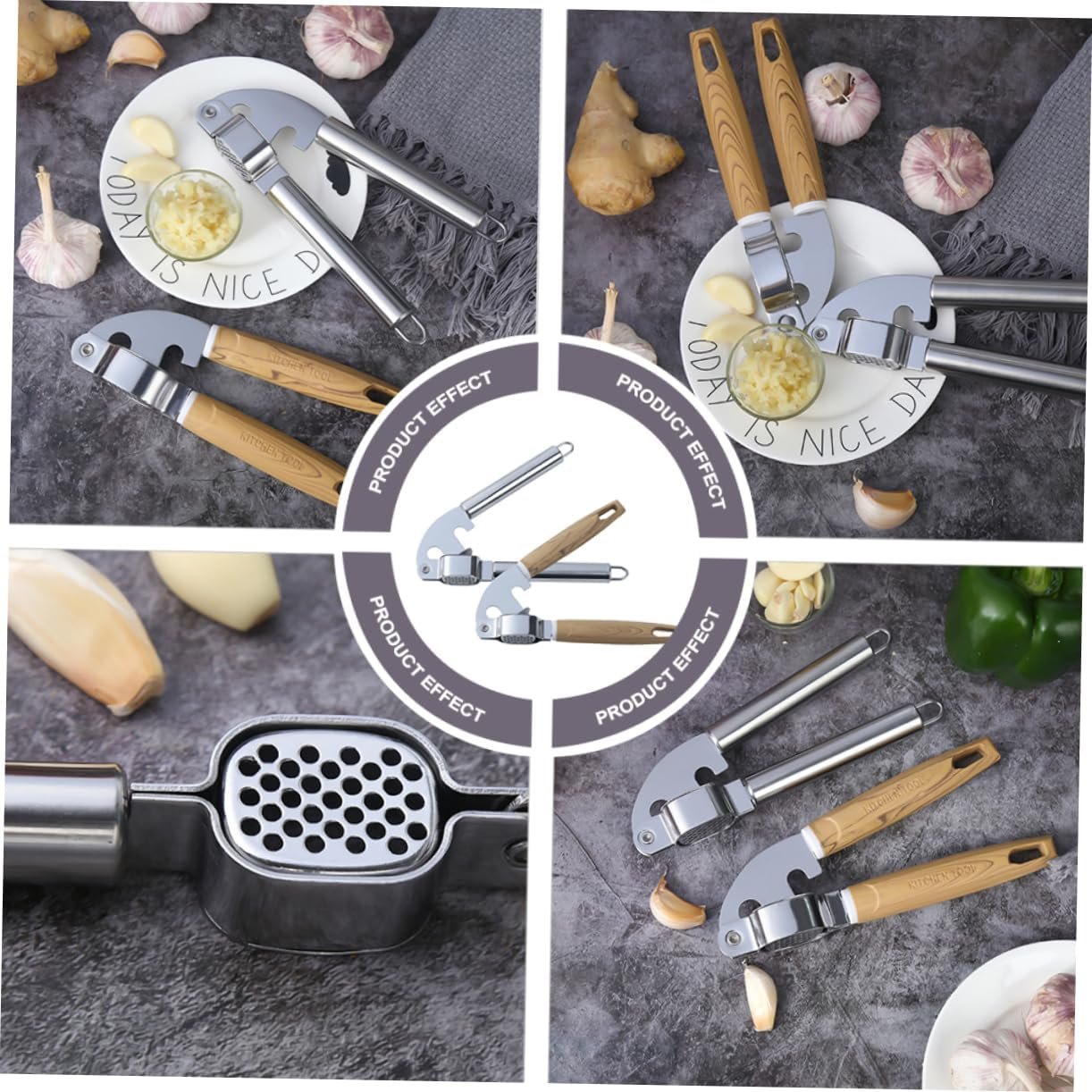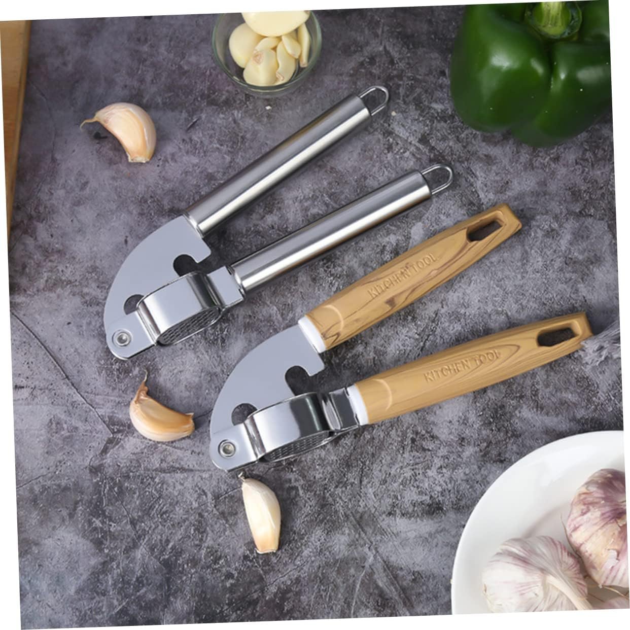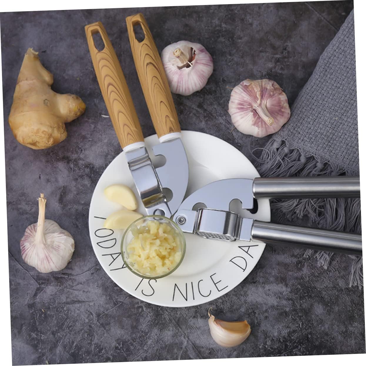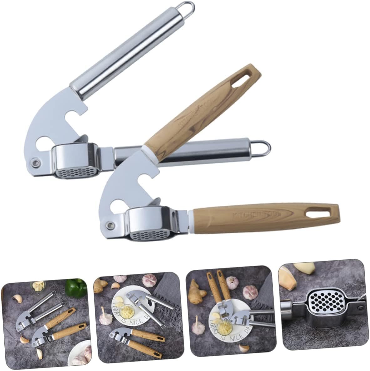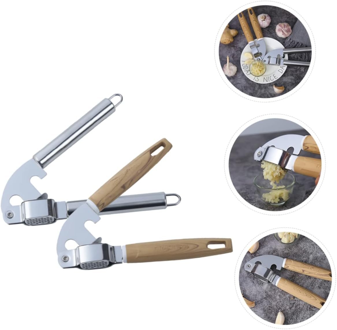 HOLIDYOYO 2 Pezzi Spremiaglio spremiagrumi cucinando premere schiacciapatate palmare premendo garlic press set cucina Utensile cucina gadget cucina taglia aglio utensili da cucina di legno