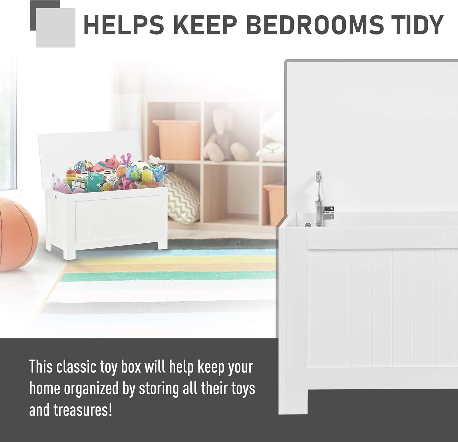 HOMCOM Storage Chest, Modern Storage Trunk with 2 Safety Hinges and Flip-Top Lid, Blanket Box for Living Room, White
