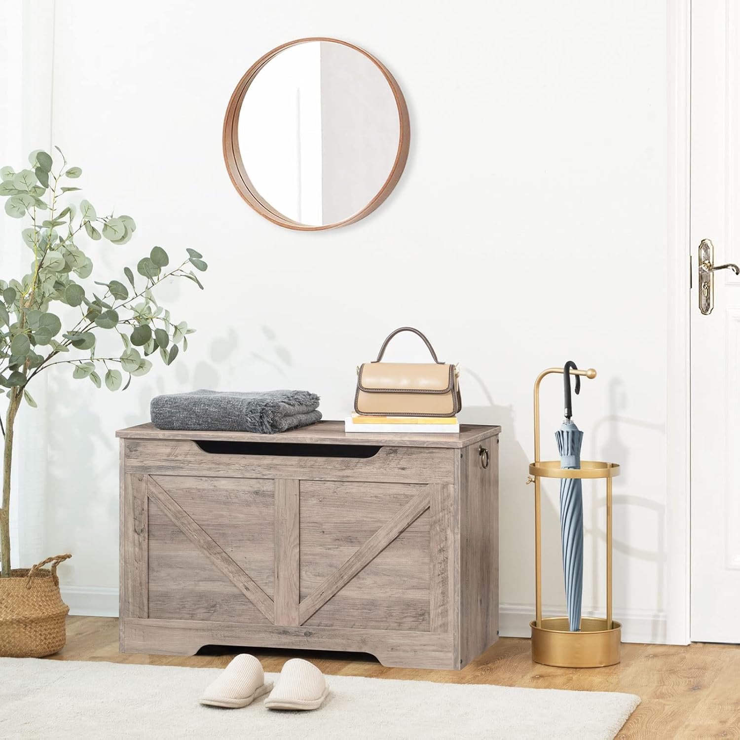 Sturdy and Safe: The storage trunk has safety hinge and grooves on the front, which makes it easy to open. At the same time, it can prevent the toy box organizer from closing too fast, and it is safer to use. The u-shaped cut-out pull is easy to move and carry Large Storage Space: Size of the storage bench is 75 x 40 x 50.5 cm (L x W x H). This storage bench has a spacious storage space under the hinged cover, providing a variety of storage options. Toy box can be used to store various toys, books, bags and other collectibles to maximize your space in a smart way You Decide Its Functions: This toy chest adopts simple design and greige appearance design, which is very suitable for creating a comfortable and attractive atmosphere. It is designed with a storage area, which can be used as a bedside stool, storage box, shoe bench, storage bench, storage chest Perfect Gift for Children: Organizing and storing are not familiar to children, but they can have the right storage space. Our children's storage boxes can help children develop good habits and independence that will last a lifetime Easy-Peasy Assembly: Storage bench with many functions usually comes with complex structure. But not this one from HOOBRO. We’ve simplified every assembly step, you’ll finish the toy box in no time if you follow the detailed instructions in the package