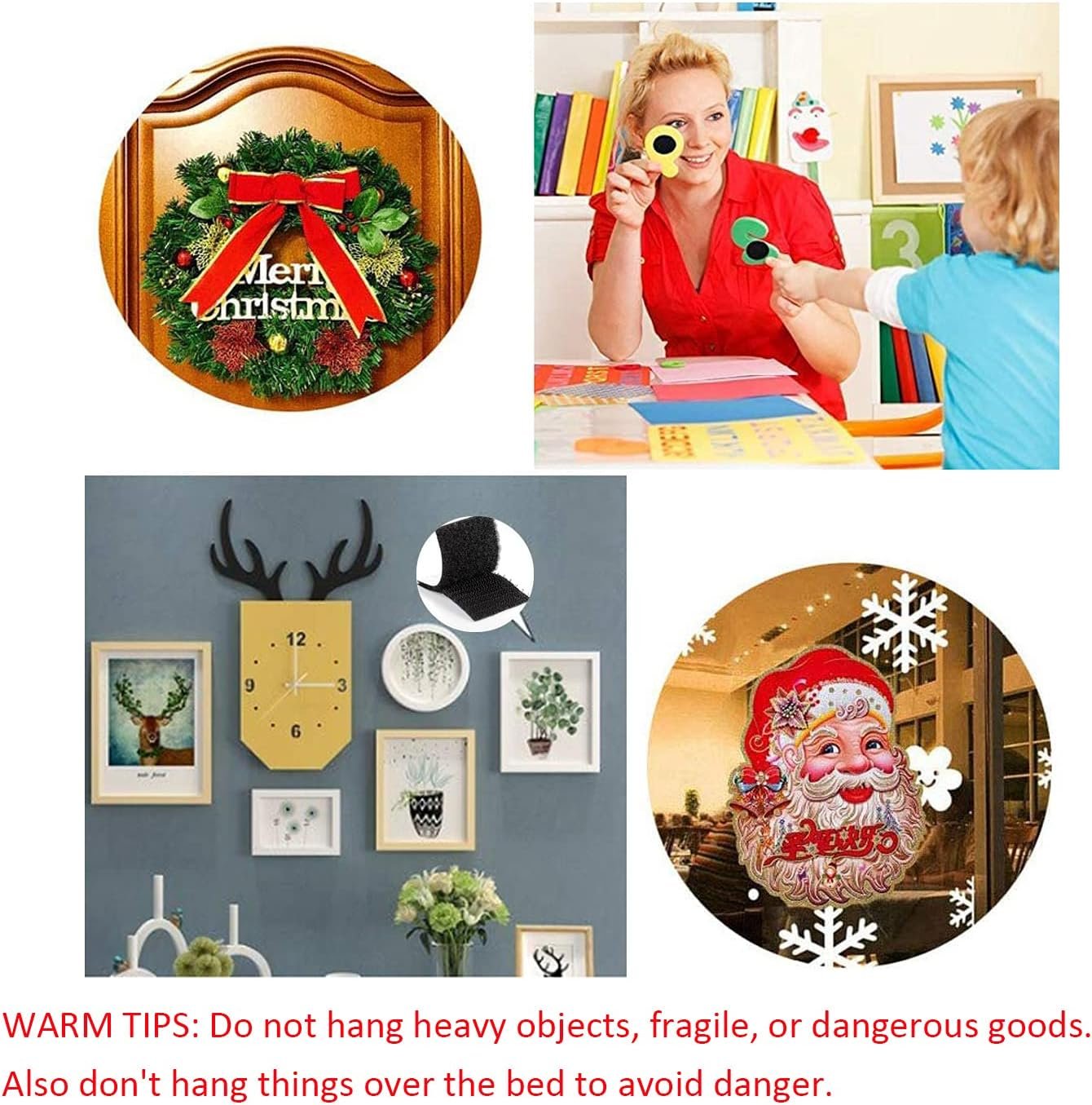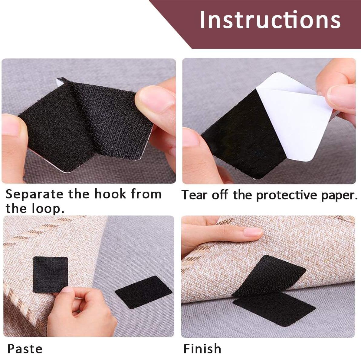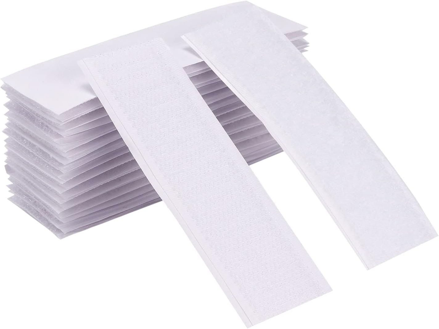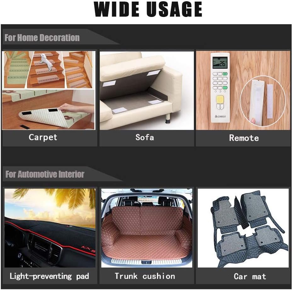 STRONG AND SECURE HOLD: 1.2*4 inch self-adhesive strips with strong grip. Strongly fasten small lightweight things. It can be used for wall sticker, phone case, hooks, poster, carpet, rug, mat, small picture frame, gadgets, small tools. The self adhesive mounting tape is an ideal sticky pad to make your life easier. Note: Our adhesive tape cannot be used on paint wall due to its feature of strong adhesiveness. WIDELY USED BOTH INDOOR AND OUTDOOR: Self adhesive stick on, very easy for school projects, organization around kitchen, home and office . Waterproof and removable features are perfect for indoor or outdoor use. LONG SERVICE LIFE: Stick on Hook and Loop Fasteners is made of good-quality nylon and polyester, so it has a long service life. Double sided hook and loop tape uses special industrial adhesive strips, which can make the adhesive firmly fixed on smooth surfaces such as hard wood, glass, metal, paper, most plastics, ceramics, the interior surface of a car and the back of a mobile phone PRESS AND SET STRIPS :Simple to use pre-cut Strips, just clean surface, peel off the protective backing and firmly press against the surface; allow adhesive bond to set for 24 hours to achieve full strength. WARM TIPS: Any power wall, painted wall, uneven surface or irregular items are not recommend. These adhesive sticky pads is very strong adhesive, stick well or not, it really depends on the surface or if it stick on the right place based on the stress point of object. Do not hang heavy objects, fragile, or dangerous goods. Also don't hang things over the bed to avoid danger.
