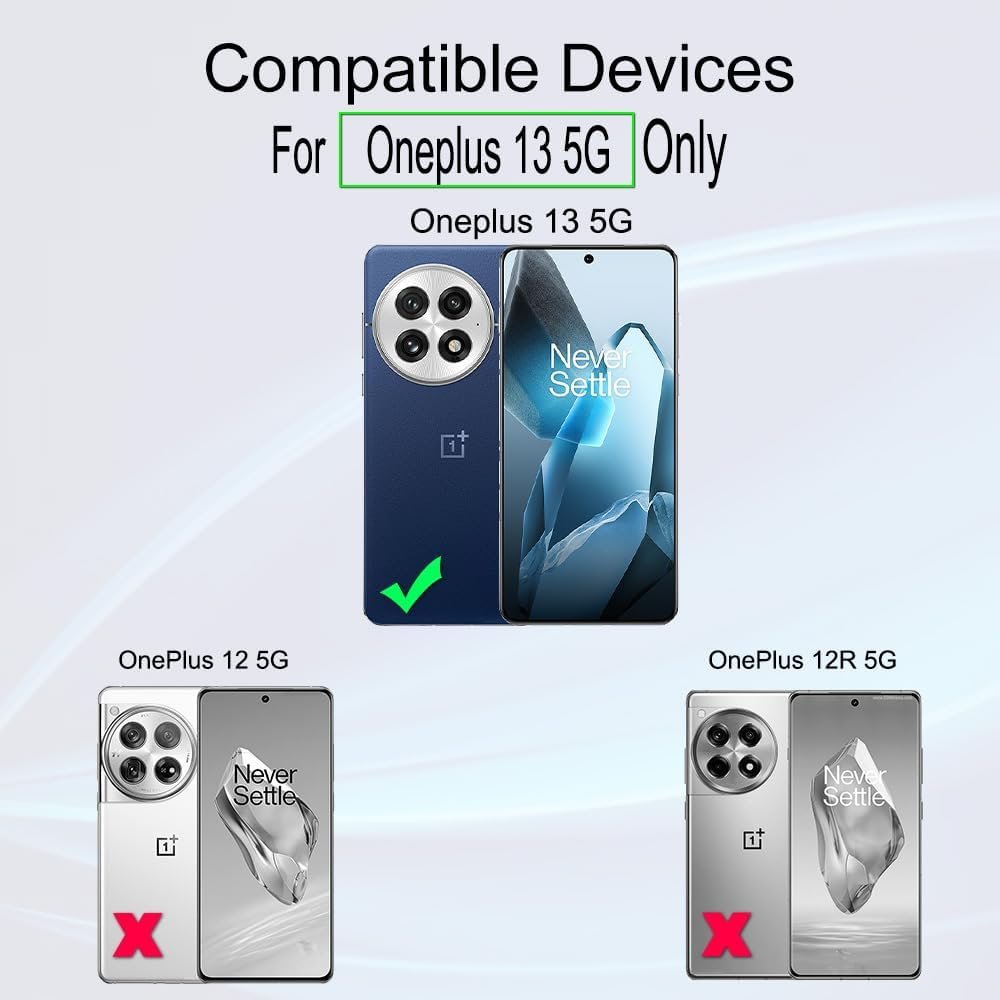 【Confirm Your Model】(Please Check your model in:“Settings-About Phone-Model”).This screen protector (Not Glass)and camera lens protector are only compatible with OnePlus 13 5G 6.82".Not for OnePlus 12/OnePlus 12R and any other model. [Easy Install Kit&Bubble-Free ]Easy-installation frame help you install the screen protector easily without worrying about aligning the screen and cleaning kit ensure bubble-free application every time.Please watch our installation video tutorial before installation. [Case Friendly&screen Protection]:The screen protector leaves enough space for the installation of most phone cases. Maximum coverage of your Mobile without interfering with the phone case,high quality TPU.Ultra-thin,99.9% HD,Ensures the origin color of the screen [Product Features] Fingerprint recognition support,Touch Sensitive,Responsive;fingerprint-free;dust-free;Oil resistant,Self-healing allows your phone to recover tiny scratches or bubbles automatically within 24 hours [Package Including]2Pcs TPU screen protector;1Pc Metal Camera Lens Protector("Hollow out" design);1Pc Back Carbon Fiber Skin Protector(transparet color);1Pc Easy Installation Frame; 2packs installation accessory kits,1Pc Installation Instructions [Warranty]Our goal is to provide the highest standard of customer service to each and every one of our customers. If you have any questions, please feel free to contact us and we will resolve your issue within 1 business day!