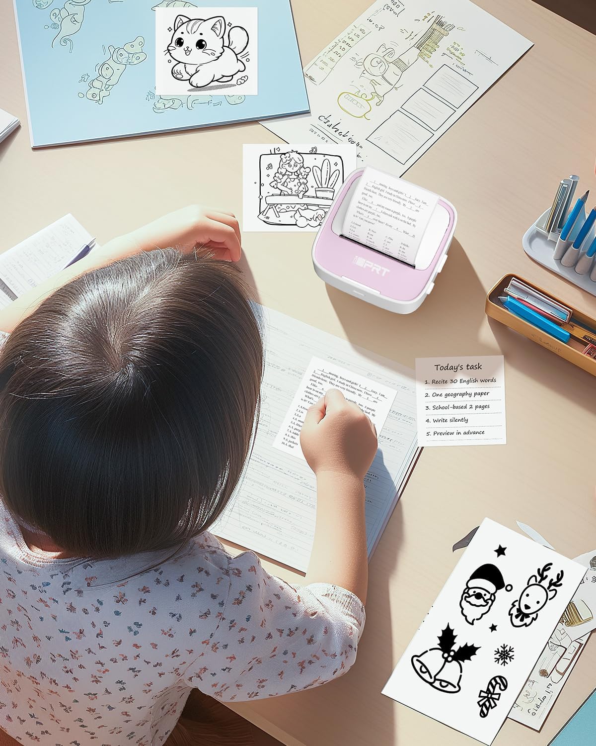 iDPRT Sticker Printer, Portable Thermal Printer with 1 Roll Sticker Paper, Bluetooth Inkless Printer Mini Label Maker for Study, DIY, Notes, Mini Label Maker with Multiple Template in Free App, Pink