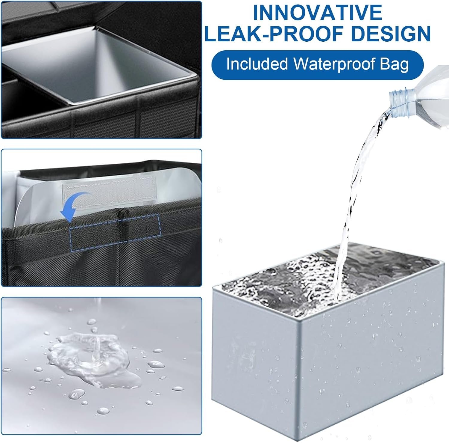 ã€Premium Car Trunk Organizer】The Iehome Trunk Organizer is best for all kinds of vehicles. Due to its 36L storage capacity, with detachable waterproof bag, wider use, it keeps everything organized while giving you a clean and tidy car. It can also be an ideal storage basket for household usage. Its reinforced handles make it more secure when you are carrying. ã€Collapsible Car Storage Organizer】It has 2 compartments and 4 sidewalls with removable divider can be resized to fit large or small vehicle spaces and conveniently folds away when not in use, 4 additional small pockets for easy access to items. Detachable waterproof bag can be used to store purchased aquatic products such as fish, shrimp, etc. It's perfect for keeping your car clean. ã€1680D Oxford and Non Slip Base Material】Your foldable car trunk organizer is manufactured with upgraded bottom Non-slip,it can keep belongings in place keep nothing items sliding around,which has great abrasion resistance waterproof and durability. The car trunk storage organizer can pass the test of time. Easy to be maintained, washable. ã€36L Trunk Organizer】The fully extended dimensions of the SUV/RV/Car trunk organizer is 13.8''L x 13.8' 'W x 11.8''H, our product has a capacity of 36L,the trunk storage organizer can fold in snap into a flat portable bag for easy carrying and storing. Half-folded mode is ideal for the business or solo traveler by fitting in the passenger seat. ã€Suitable for Multiple Vehicles & Multifunction】 Whether it is a car, SUV, RV or truck, it can fully meet the storage and organization needs of vehicle sundries in various life scenes.Our trunk organizer for car make car organization easier and store drinks, food, groceries, tools, sporting goods, cleaning supplies, emergency equipment and small household items with ease and convenience. It's also very portable, with a handle, so you can easily take it out for a picnic or camping.
