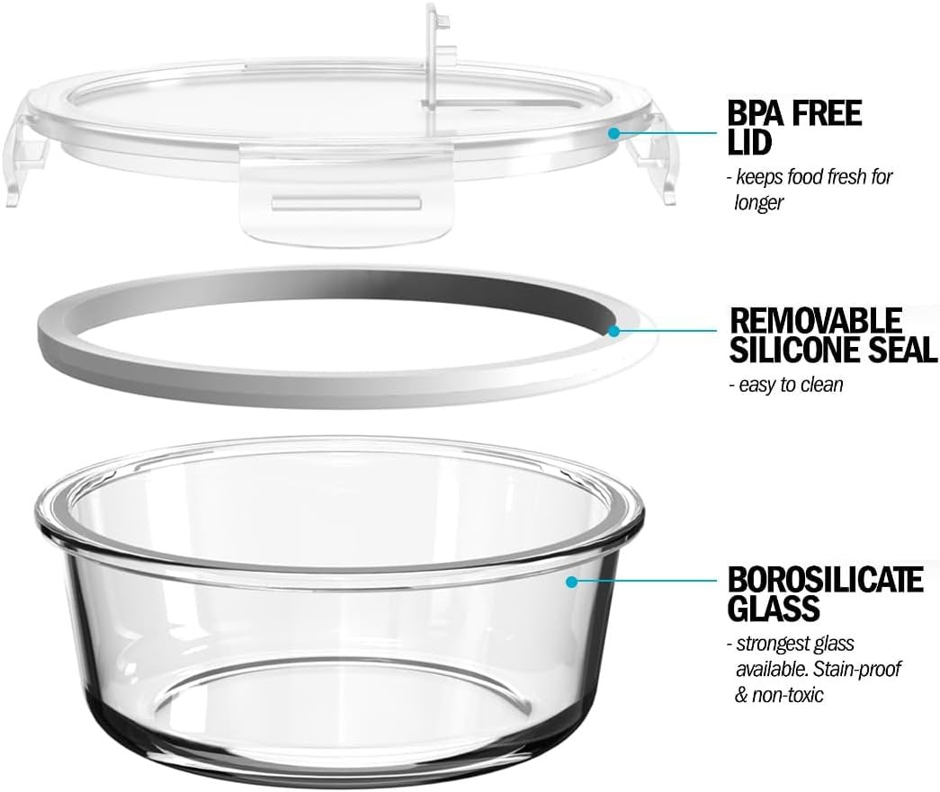 Food On Demand: Never has it been so simple and nutritious to eat on the go; Just make batches of food, divide it into meals, seal it into these airtight, leak-proof, 950 ml glass food storage containers; Vent lids allow steam to escape while your food is cooling down; Freeze or refrigerate your meals as desired; Simply reheat in the oven or the microwave when you are ready to eat FDA Approved and BPA Free: Not only do these Igluu Meal Prep roasting and baking containers keep food fresher longer, the LockTab system keeps your meal free from outside bacteria; Borosilicate glass and the BPA-free polypropylene lid are odourless, leaving your food tasting just the way you prepared it; Now you can do your part to remove single-use plastic from the environment Meals Your Way: Whether you’re a university student who doesn’t want to risk lunch at campus dining, an office worker who wants to avoid the cost of eating out both to your wallet and your waistline, or anyone who simply wants to eat your food on your terms, these glass lunch box containers will become an integral part of your weekly routine Safe And Sturdy: Each of these glass meal prep containers is oven and microwave safe and can easily be stored in the fridge or freezer; The four-latch lid with removable, washable silicone seal gives you the peace of mind of knowing that an accident which sends your carefully-constructed meal spilling all over your bag or locker is extremely unlikely; Plus, we give you an extra lid should one inevitably disappear Re-Sealable Lunch / Leftovers Containers: Our single compartment oven proof container works best for storing leftovers from last nights dinner or takeout; Store your meal in the fridge or freezer and enjoy as a microwave meal for lunch the next day