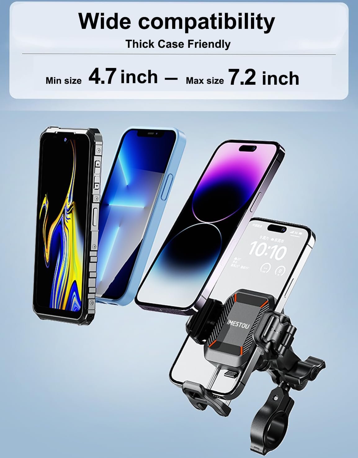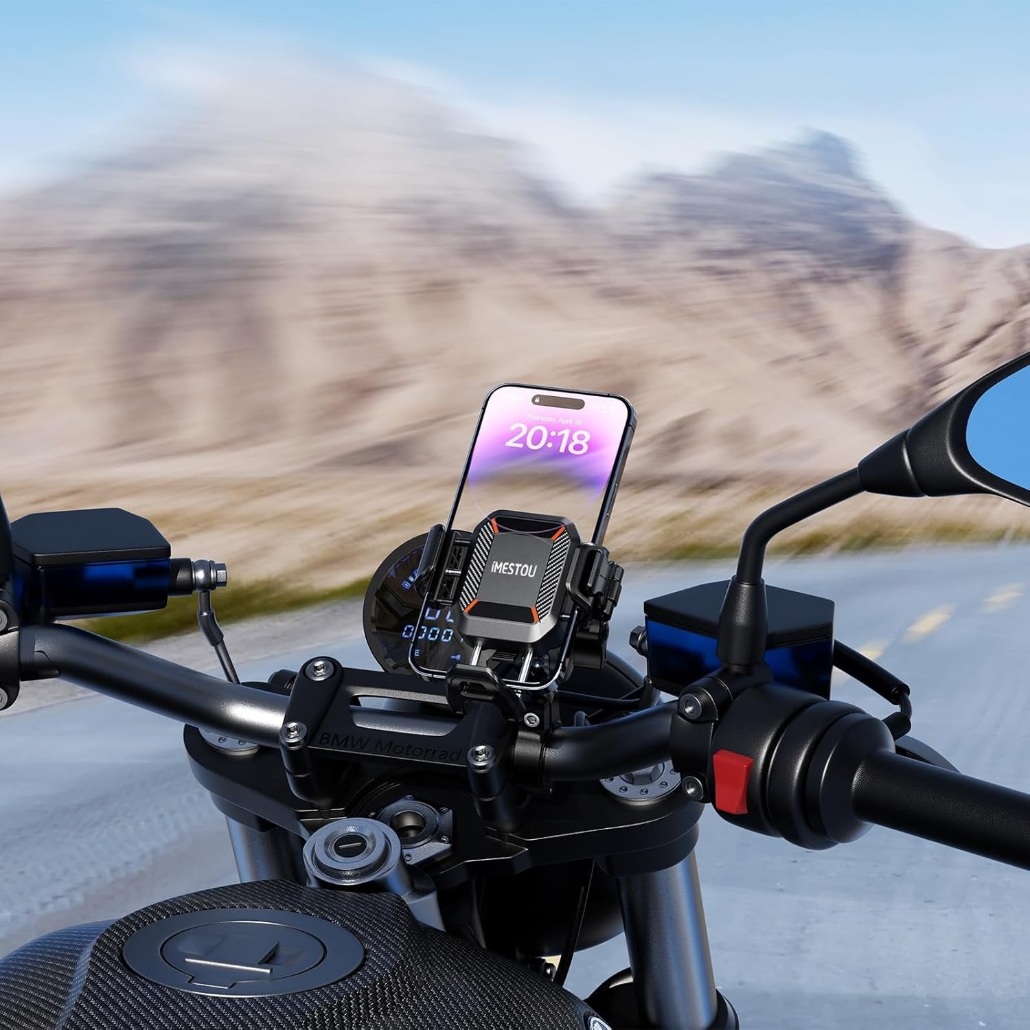 iMESTOU Anti-Vibration Phone Mount for Motorcycles and Bikes with Shock Absorbers & Anti-Theft Design, 1" Ball Phone Mount Suitable for 5.2"-7.2" Up to 15mm Thick Phones, Fits for 22-32mm Handlebars