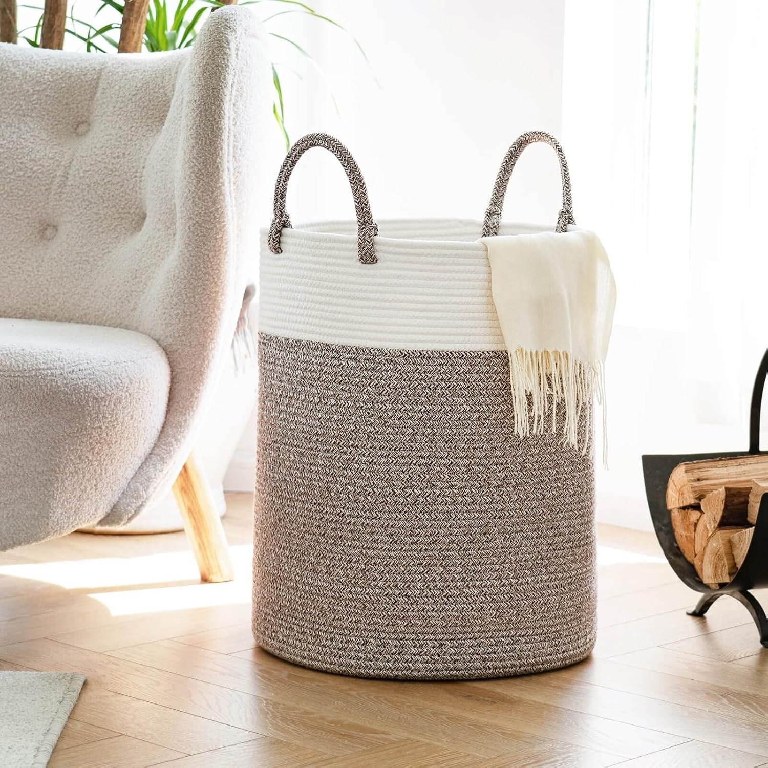 INDRESSME Extra Large Laundry Basket,Woven Laundry Hamper with Handles,Baskets Storage Organization for Blanket Home Décor,Tall Rope Storage Basket for Towels, Pillows,16 x 20 inches