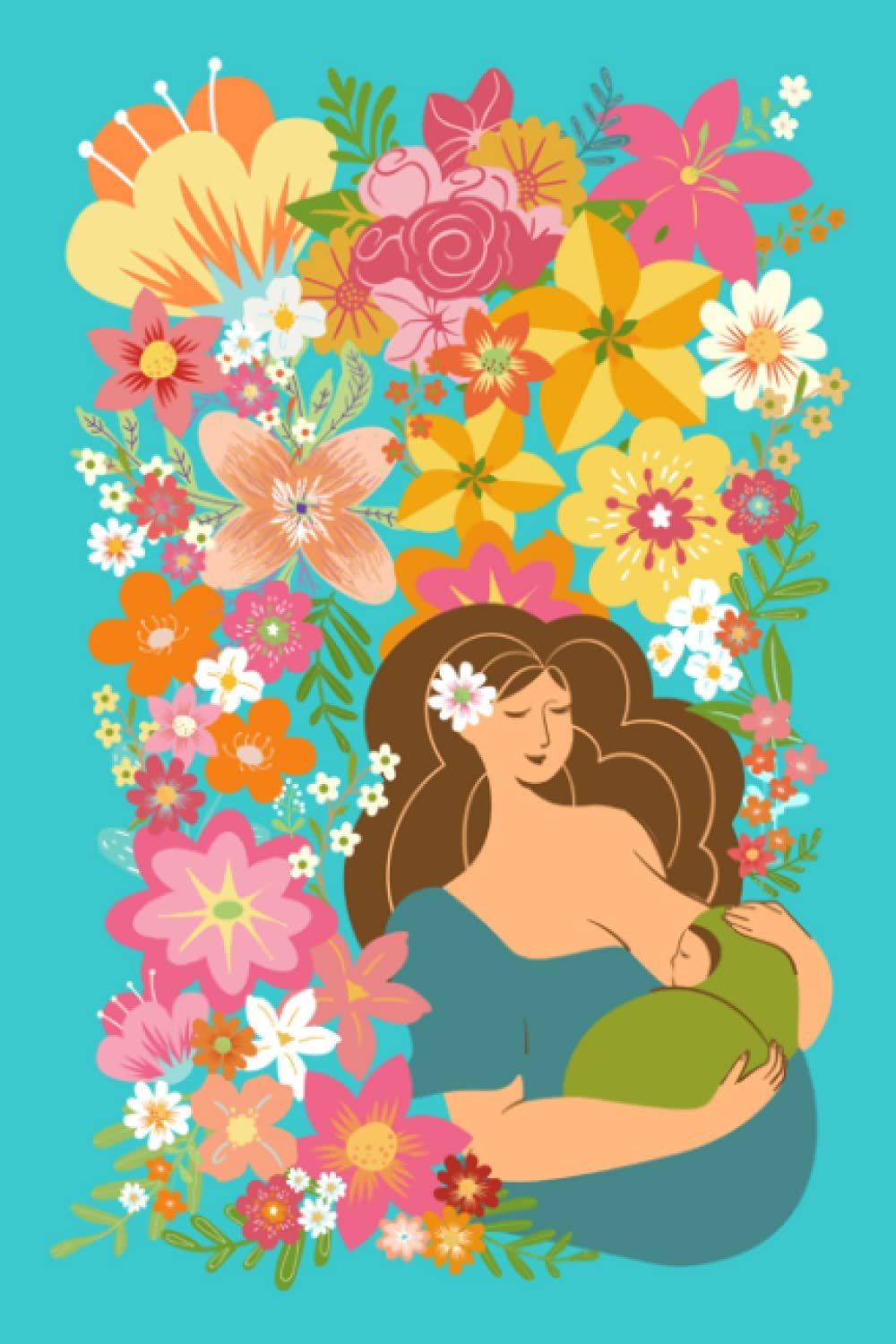 Inspire Paradise Breast Feeding Journal: 6" x 9" Newborn Nursing Log To Record Food Allergies/Sensitivities~Brunette Mama and Baby in Turquoise Floral Paradise